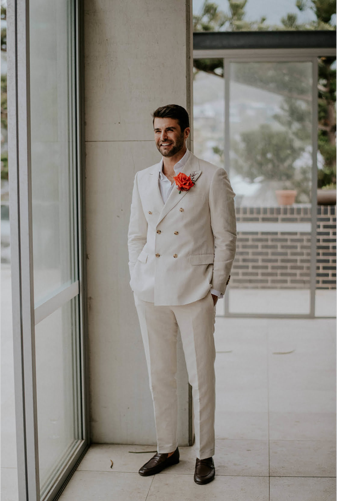Rounding out our top ten is Sam’s double-breasted M.J. Bale linen suit. The absolute perfect addition to this duo’s backyard coastal wedding, Sam opted to ditch the bow tie and opt for an open collar. Topping it all off was one of Luca Luna’s ultra-vibrant roses. Bellissimo! Head on over here to squiz the rest of Scott Surplice Photography’s snaps and here to nab this marvellous lens guy for your own big day.