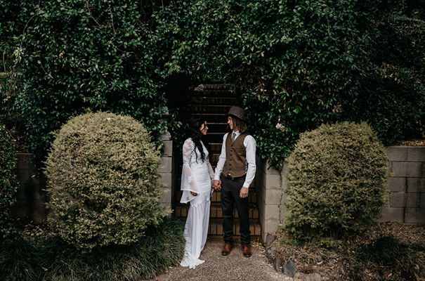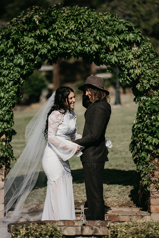 THE VENDORS Photographer Trent & Jessie // Stationery Home made // Printer Vistaprint // Ceremony River-Run Gardens // Reception Private property Catering Bluebird Kitchen Warwick // Cake Whipped up // Hire items Tooowoomba Party Hire // Entertainment Dave Elwood // Priest Father Jamie Collins // Engagement ring Antique // Wedding bands Warwick Jewellers THE BRIDE // Bridal gown Judy Copley Couture // Veil Madame Tulle // Robes Homebodii // Shoes Tony Bianco // Accessories Lovisa // Makeup Serena Wyllie Make Up Bridesmaid dresses ASOS THE GROOM Suit ASOS.