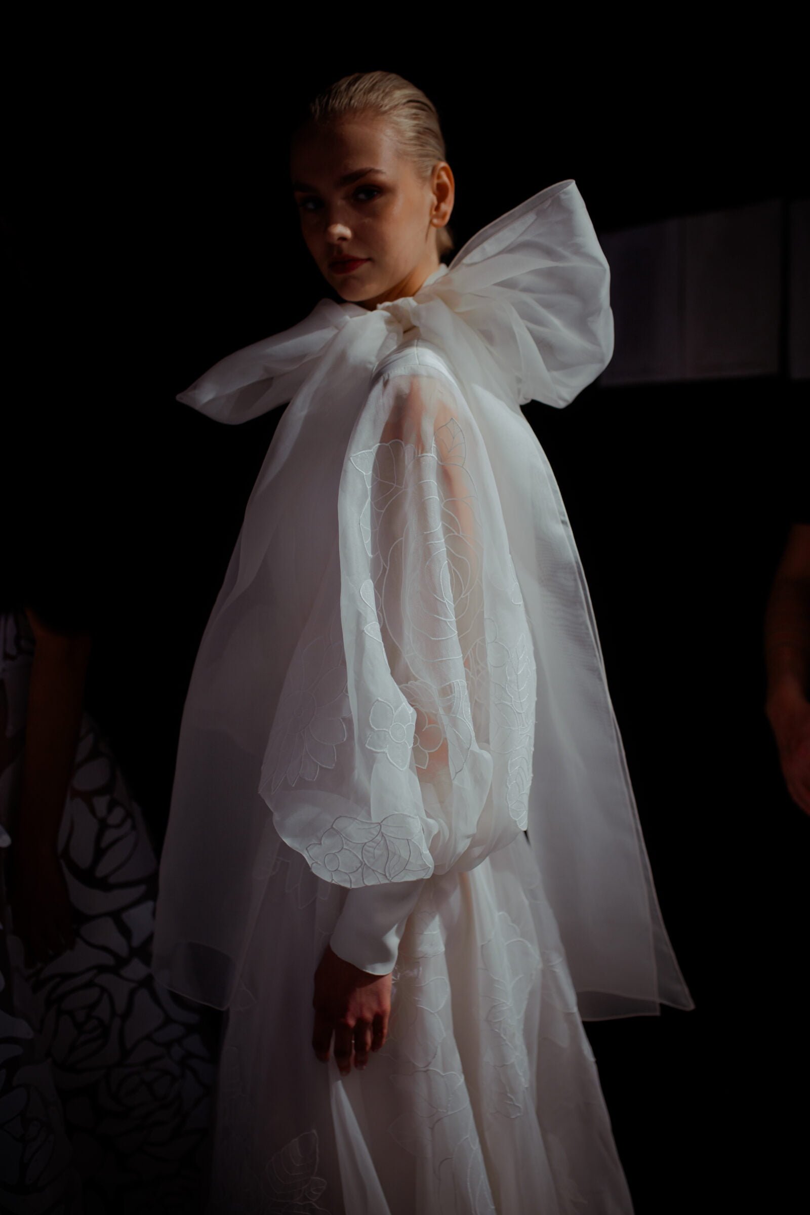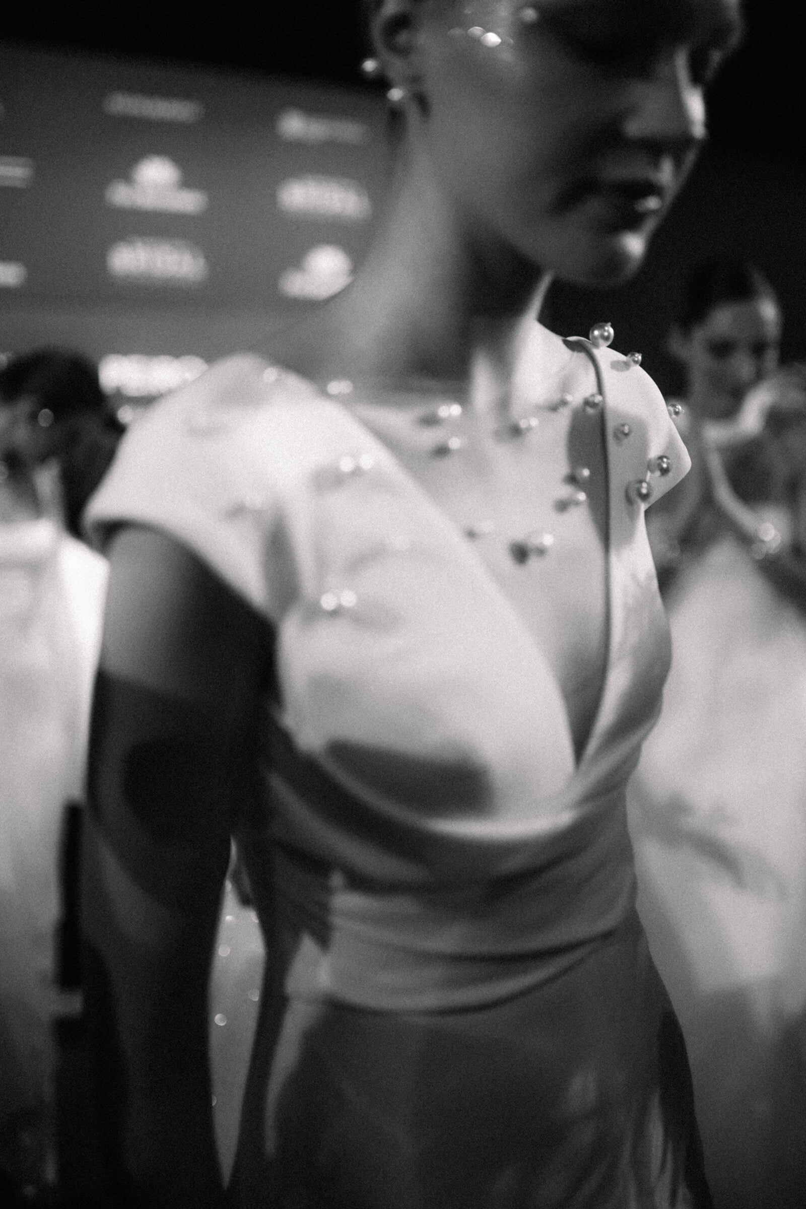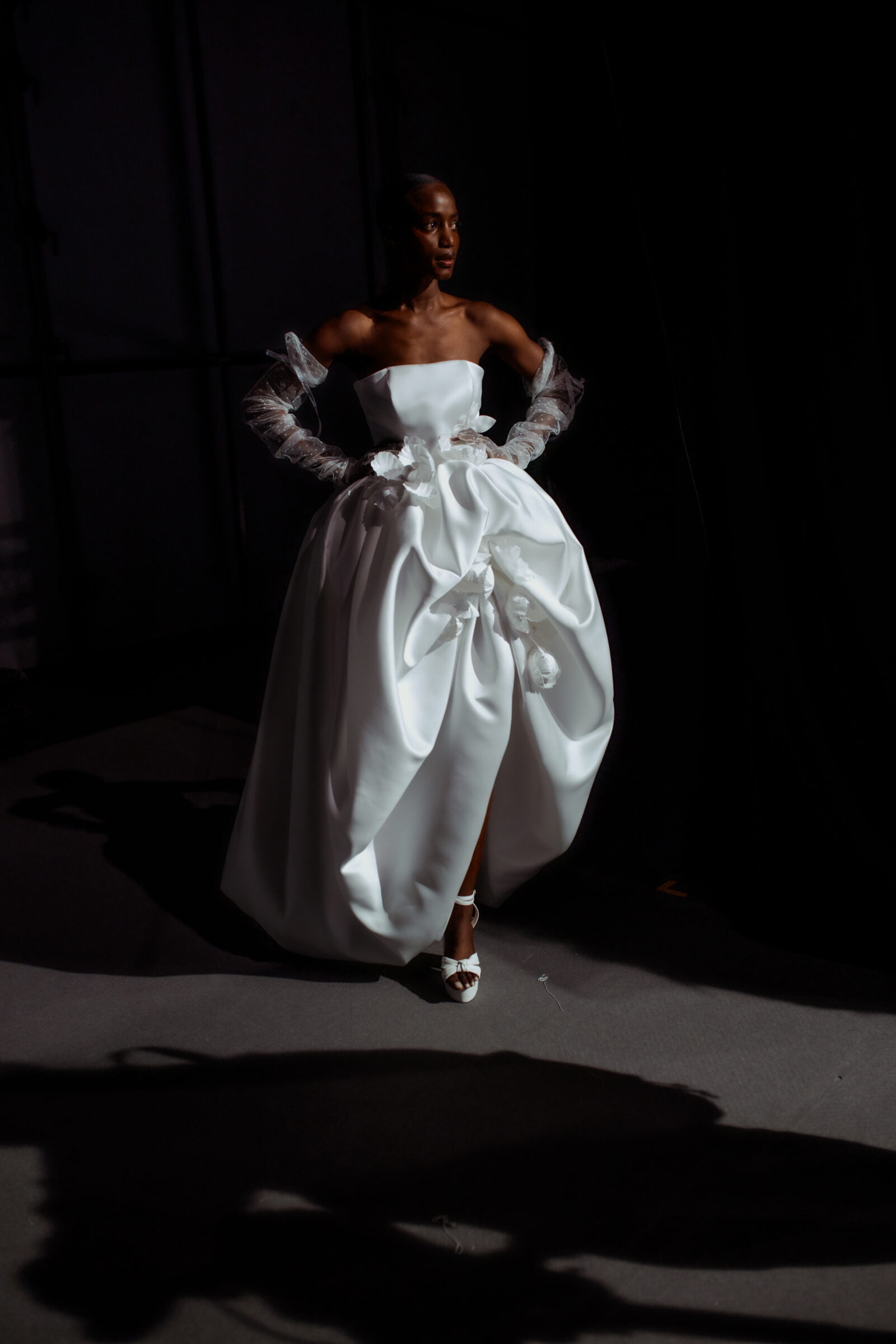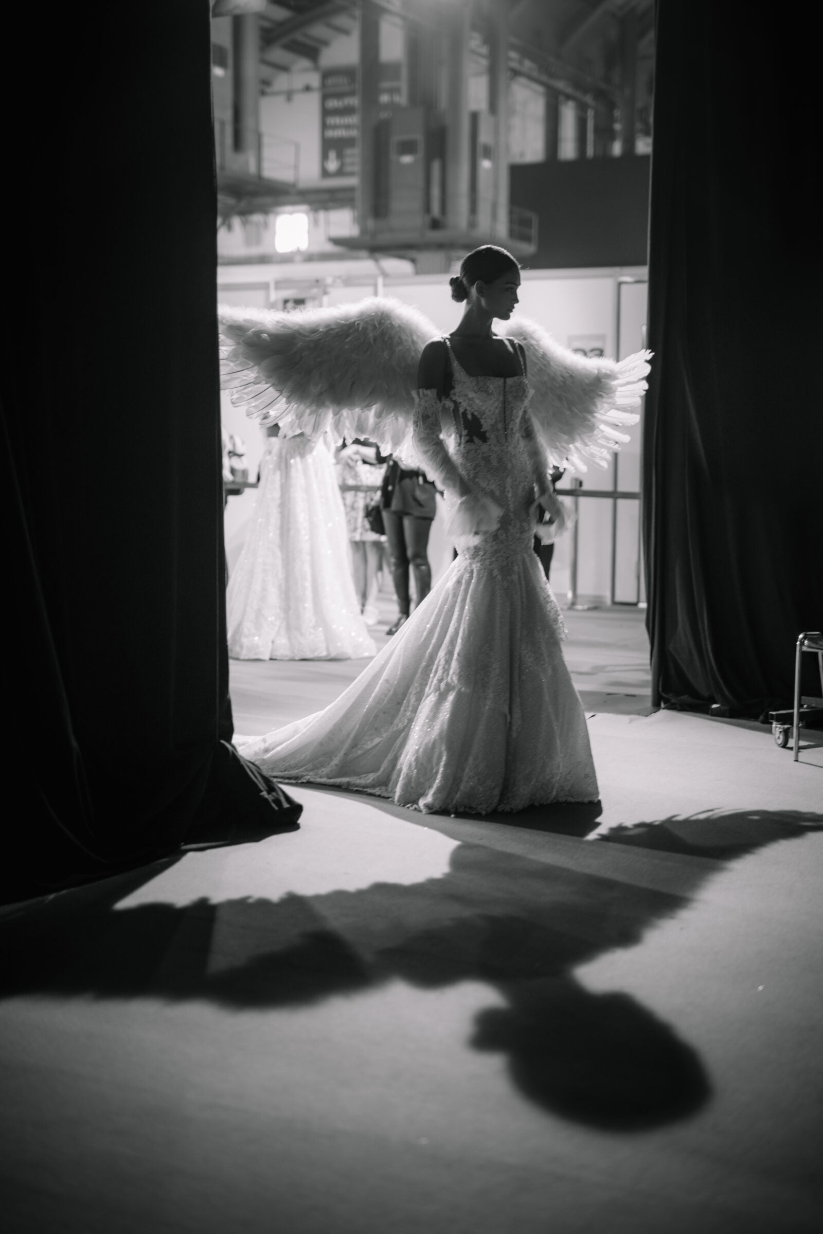 Another huge highlight was cutting-edge Spanish designer Yolancris. The show’s mechanics and drama alone was breathtaking enough, but the collection that followed… Ooft! Picture this: dark runway, classical tune To The Hills blasting, spotlights start flashing and then the most epic suit and statement veil combo strut out. From there, it was hit after hit – sheer gloves, lavish lace, adorned minis and on-trend floral motifs. Each look was uber-romantic yet edgy, weaving modern chic with classic allure.