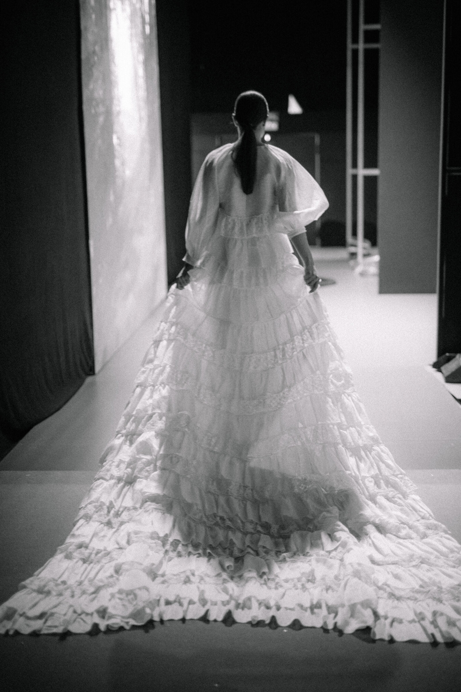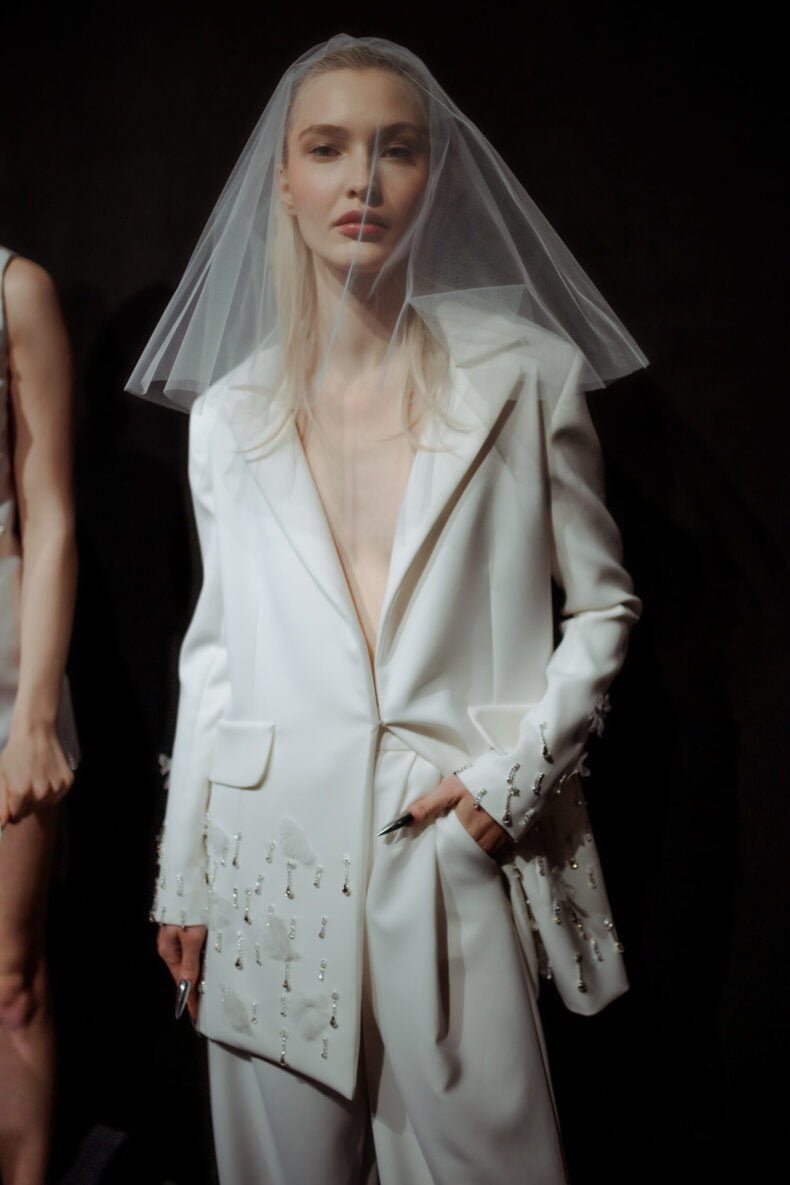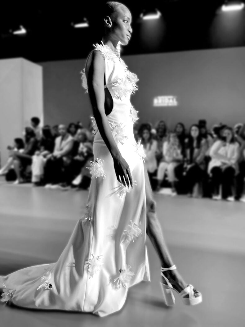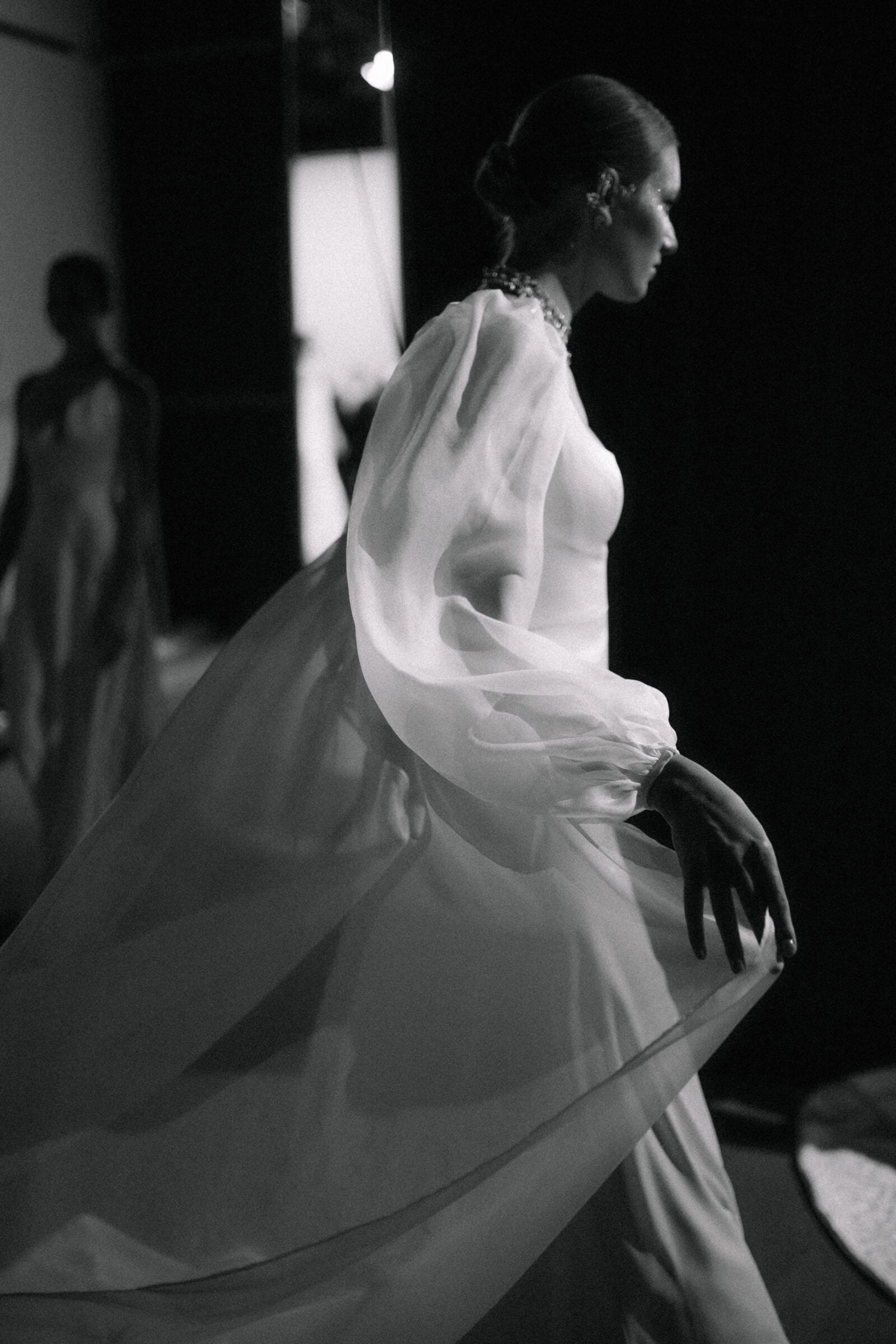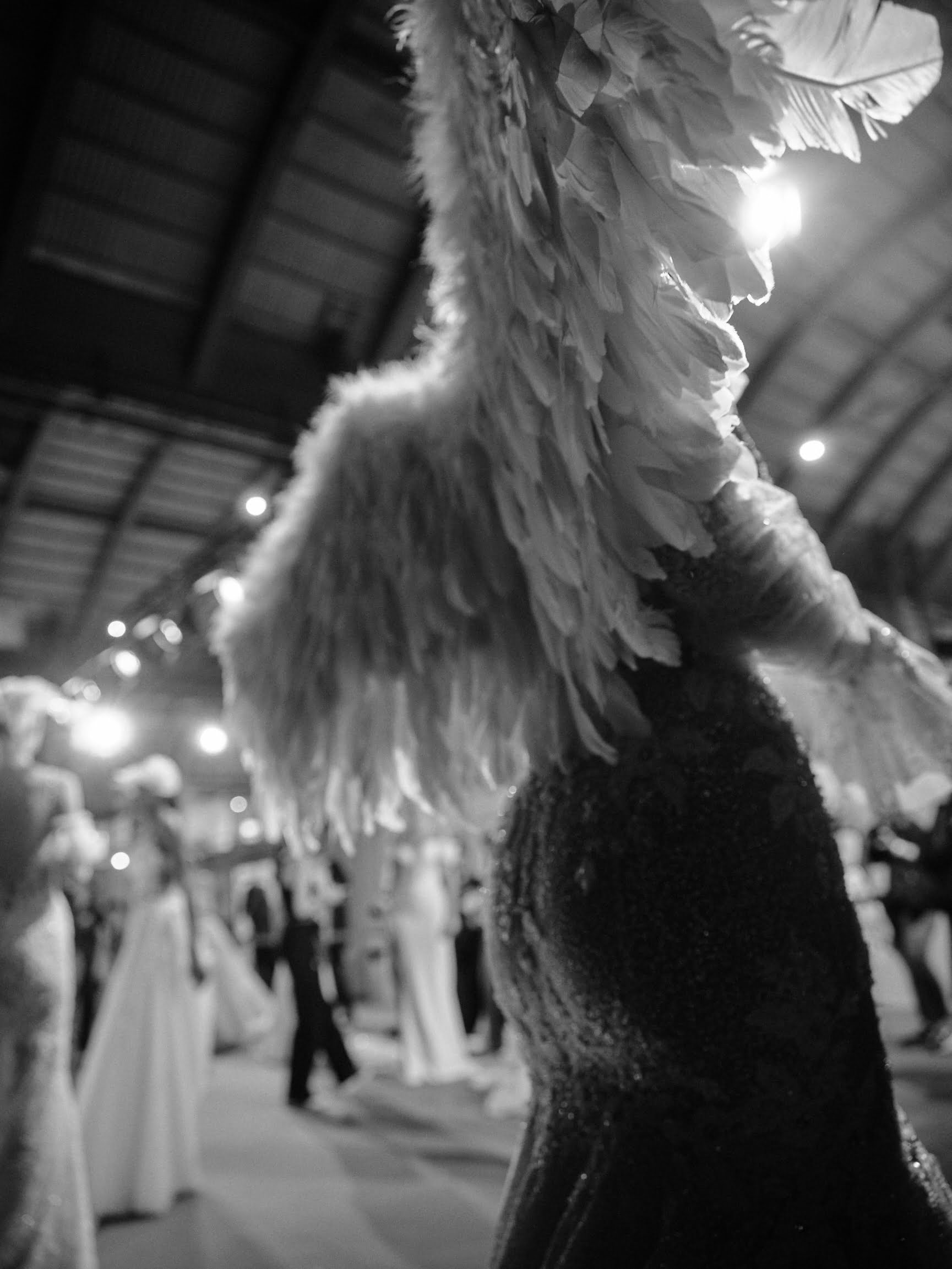 Another huge highlight was cutting-edge Spanish designer Yolancris. The show’s mechanics and drama alone was breathtaking enough, but the collection that followed… Ooft! Picture this: dark runway, classical tune To The Hills blasting, spotlights start flashing and then the most epic suit and statement veil combo strut out. From there, it was hit after hit – sheer gloves, lavish lace, adorned minis and on-trend floral motifs. Each look was uber-romantic yet edgy, weaving modern chic with classic allure.