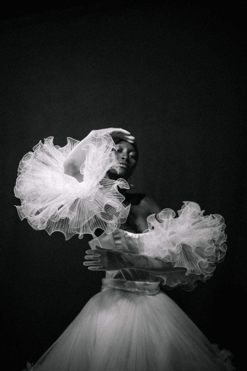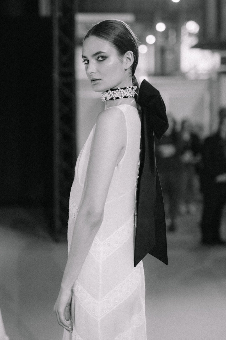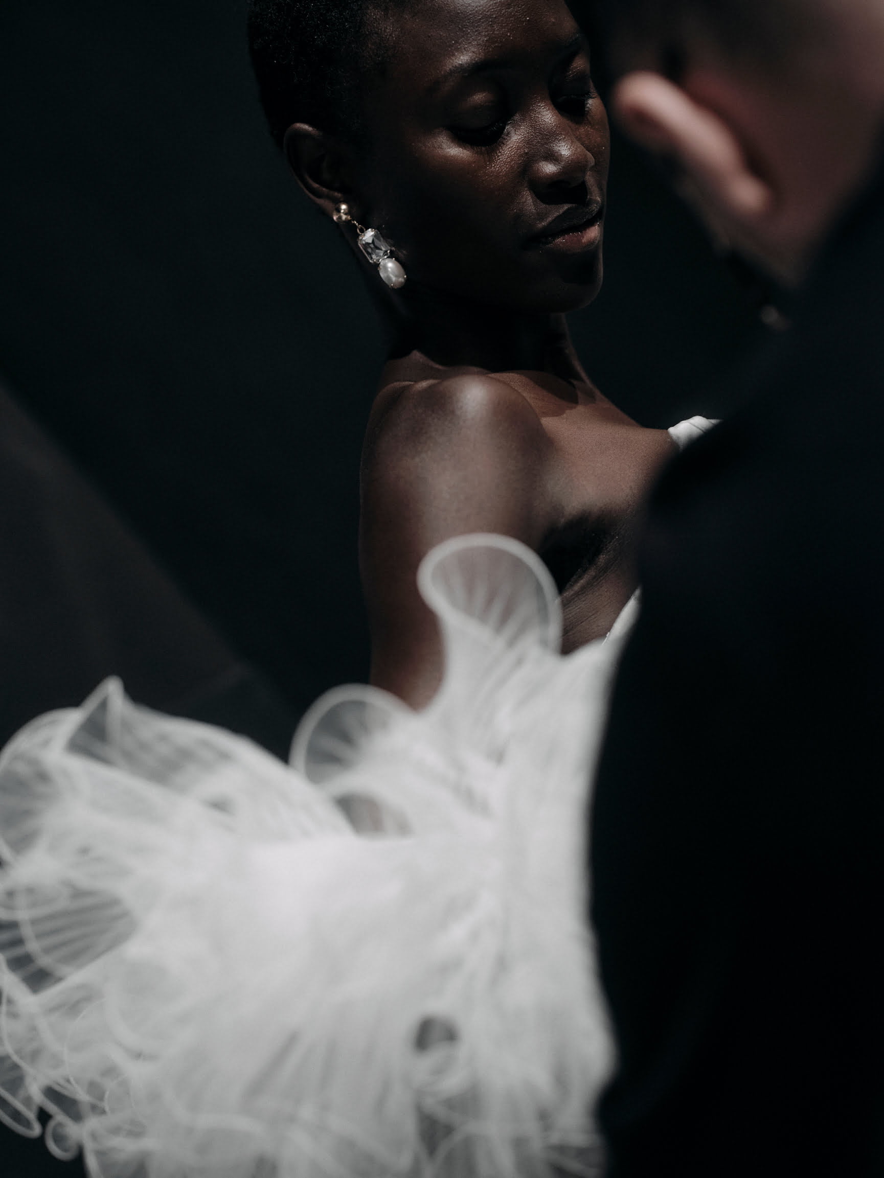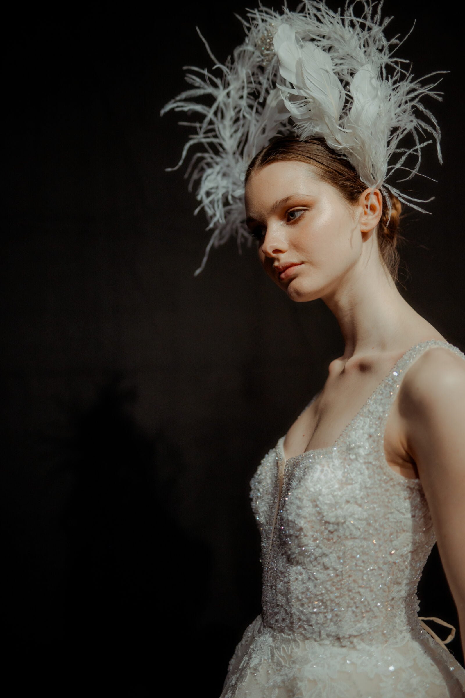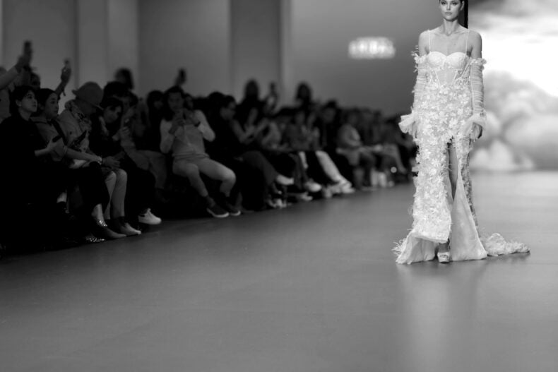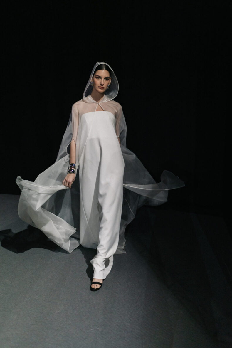 Another huge highlight was cutting-edge Spanish designer Yolancris. The show’s mechanics and drama alone was breathtaking enough, but the collection that followed… Ooft! Picture this: dark runway, classical tune To The Hills blasting, spotlights start flashing and then the most epic suit and statement veil combo strut out. From there, it was hit after hit – sheer gloves, lavish lace, adorned minis and on-trend floral motifs. Each look was uber-romantic yet edgy, weaving modern chic with classic allure.
