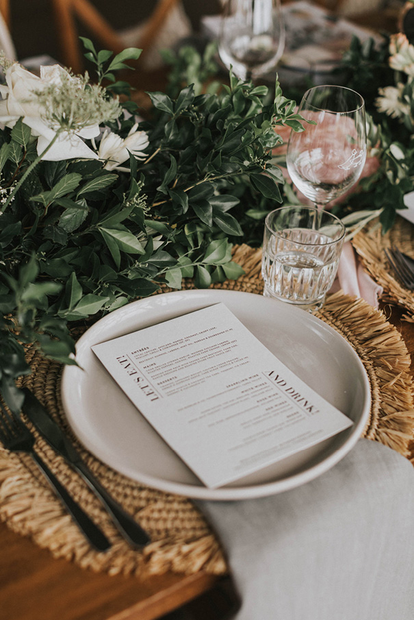 No one would of been in attendance without our rad letter pressed invitations from D&d letterpress, who also whipped up menus and place cards that Rach from Peachey Pie Weddings so artfully styled on the table with raffia placemats and linen napkins from The Wedding Shed, rose quartz crystals from Byron Bay Tipi Weddings, some tousled blush linen along with blooms from Jess at Poppy and Fern Flowers. It’s easy to see why these two lovely ladies are go-to vendors for brides tying the knot in the Byron Shire and beyond (You can check out more of their work in this awesome wedding here)