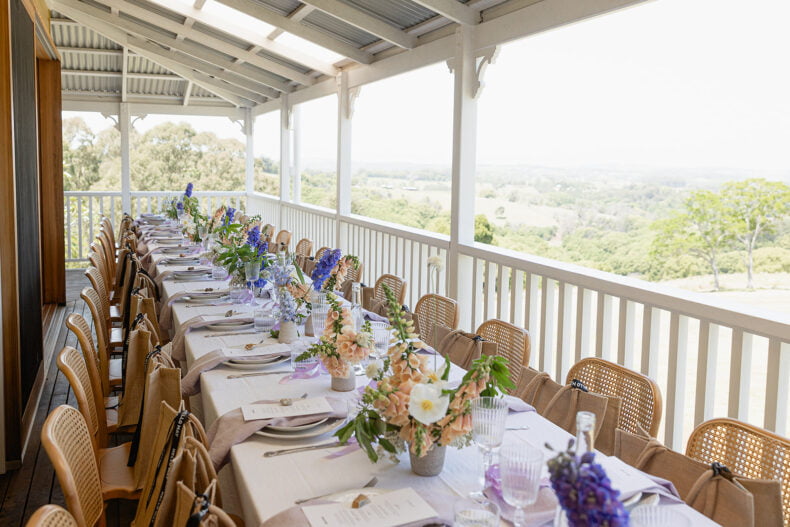One of the NSW North Coast’s newest wedding venues, The Grange Clunes played host to us for the lunchtime soiree and all we can say is wow! The family home of Renee and Jared Dixon, The Grange is a 10-acre-plus space, where you have the power to customise your event any way you please. It was scorching hot on the day of the launch, so we moved the party to the shade of the wrap-around-deck rather than the sprawling lawn as we had first planned, and it went off without a hitch. The flexibility and versatility of this venue is a big tick, but it’s the lush rolling vista and lovingly restored 130-year-old homestead that are the real showstoppers.