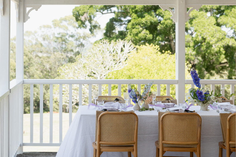 One of the NSW North Coast’s newest wedding venues, The Grange Clunes played host to us for the lunchtime soiree and all we can say is wow! The family home of Renee and Jared Dixon, The Grange is a 10-acre-plus space, where you have the power to customise your event any way you please. It was scorching hot on the day of the launch, so we moved the party to the shade of the wrap-around-deck rather than the sprawling lawn as we had first planned, and it went off without a hitch. The flexibility and versatility of this venue is a big tick, but it’s the lush rolling vista and lovingly restored 130-year-old homestead that are the real showstoppers.