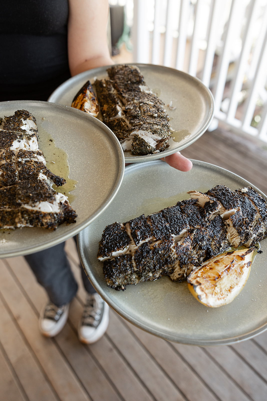 Then there was the food… Woah! Everyone was blown away with the Peruvian share-style feast thoughtfully prepared by local caterers A Chef’s Pocket. Think braised lamb shoulder, with pisco and sultanas and hibachi-grilled kingfish steaks with dry chimchurri… Literal *chef’s kiss*. When it came to the drinks list, Cape Byron Bay Distillery provided a Brookie’s Gin cocktail for guests on arrival, while Clunes-based small-batch wine company Jilly Wines (run and founded by The Grange owner and winemaker Jared) flowed freely.