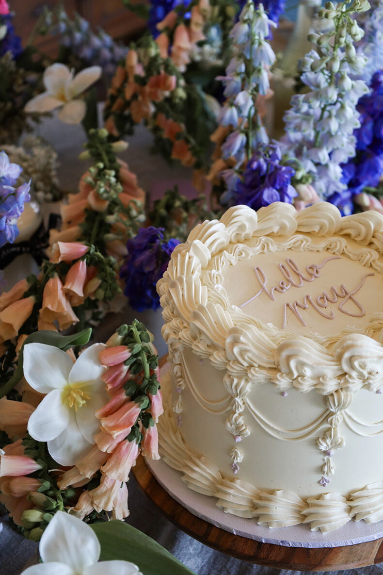 Due to the blank canvas aspect of the venue (as well as the fact we pretty much hosted a small wedding), we called in one of the best in the biz to plan, co-ordinate and style the day (seriously guys, if you’re on the fence about hiring a event planner/stylist, trust us, they’re worth their weight in gold). The lovely Steph from Blossom Gatherings is an absolute powerhouse and assembled the most talented bunch of vendors to create the magic – elite hire company The Wedding Shed delivered all the furniture, glassware, crockery and linen, Paper Paper Co nailed the stationery and signage, the incredible Hannah Darling serenaded guests, local baker Hello Little Crumb made the EPIC cakes, including a French earl grey and brown butter poached pear tea cake with lime glaze (drool!), and the stunning floral styling was courtesy of Emily of FLWR, who sourced all the beautiful blooms locally.