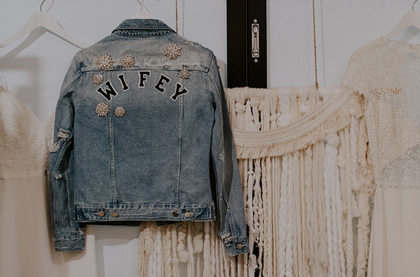What trends are you currently loving in bridal fashion right now? Bridal jackets are a major trend at the moment. They add a touch of personality to your outfit and help keep you warm between photos, whilst sipping cocktails or when leaving the venue at the end of the night. At the top of the list are personalised leather jackets, tasteful sequin bombers, or my personal favourite,Chosen By One Day denim jackets that you can add customised text to. Bridal gowns, two-pieces are getting more and more popular. A personal fave is the laser cut lace top and plain front split skirt by Riki Dalal