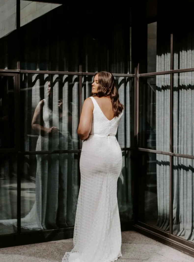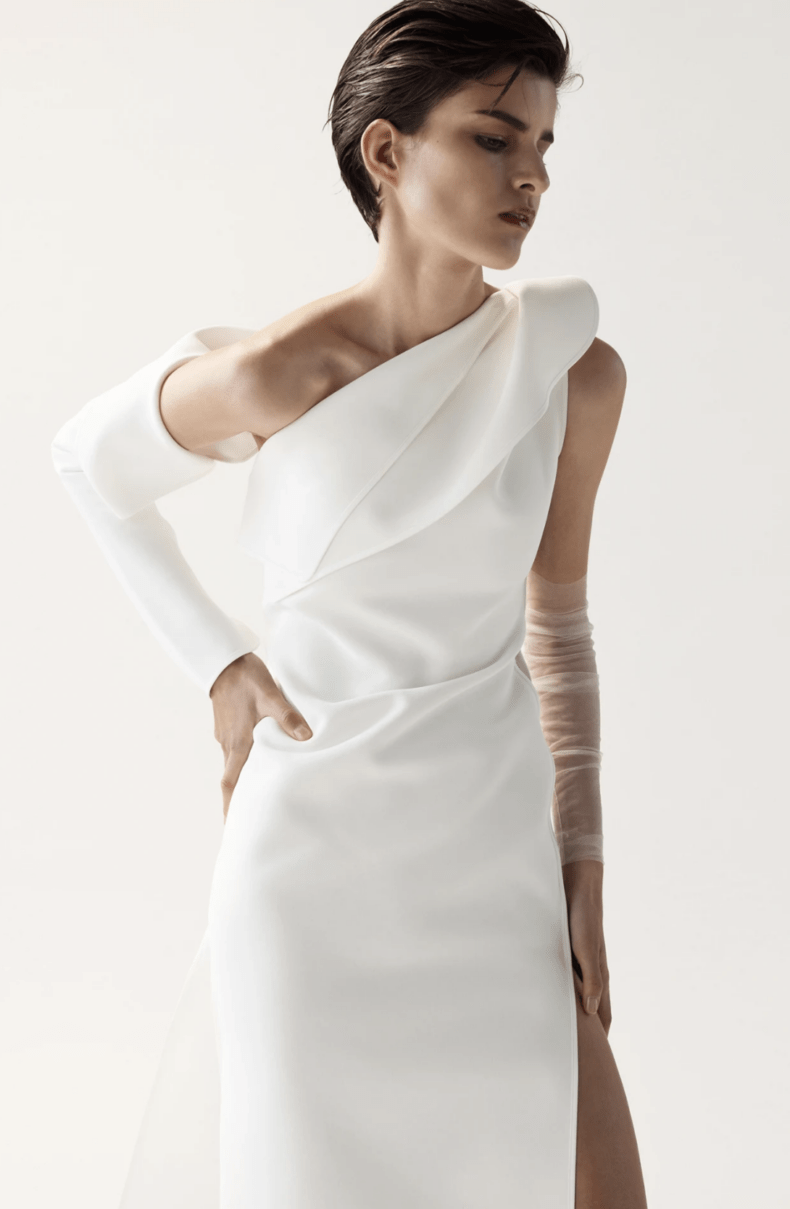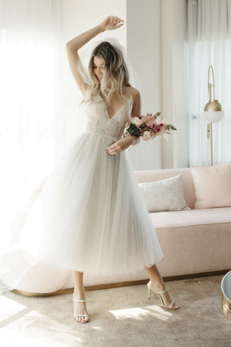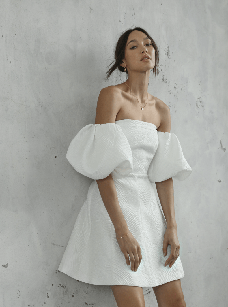 You’ll find mini, midi and full-length options, and some delish options from the likes of Grace Loves LaceMrs Fray, Karen Willis Holmes, April Lorraine Bridal and Moonstruck Bride. There’s also a few phenom picks from Prea James Bridal, including the hot AF Anouk dress above! Ooft! And a Oui The Label little number with sleeves that we’re lusting over hard. This selection of beauties is strong, you guys, and every single option will cost you three-grand or less.