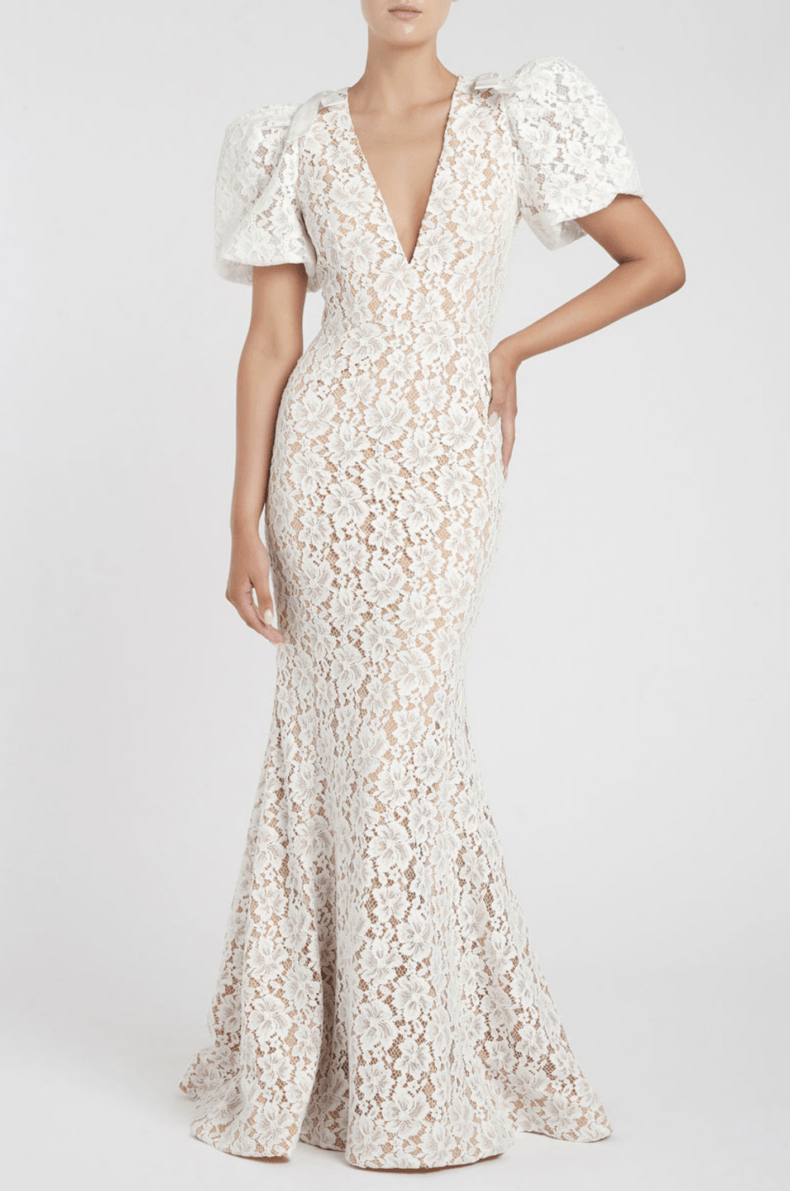 Rebecca Valance Floria Lace gown, $1599. Shop online at Rebecca Valance.