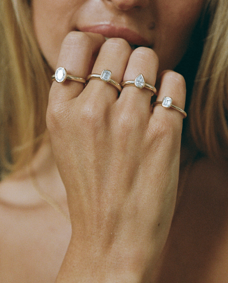 0.5 Oval Diamond Solitaire, from $6960; 0.5 Pear Diamond Solitaire, from $6610; 0.5 Emerald Diamond Solitaire, from $6610; 0.4 Emerald Diamond Fine Solitaire, from $5120, Ruusk.