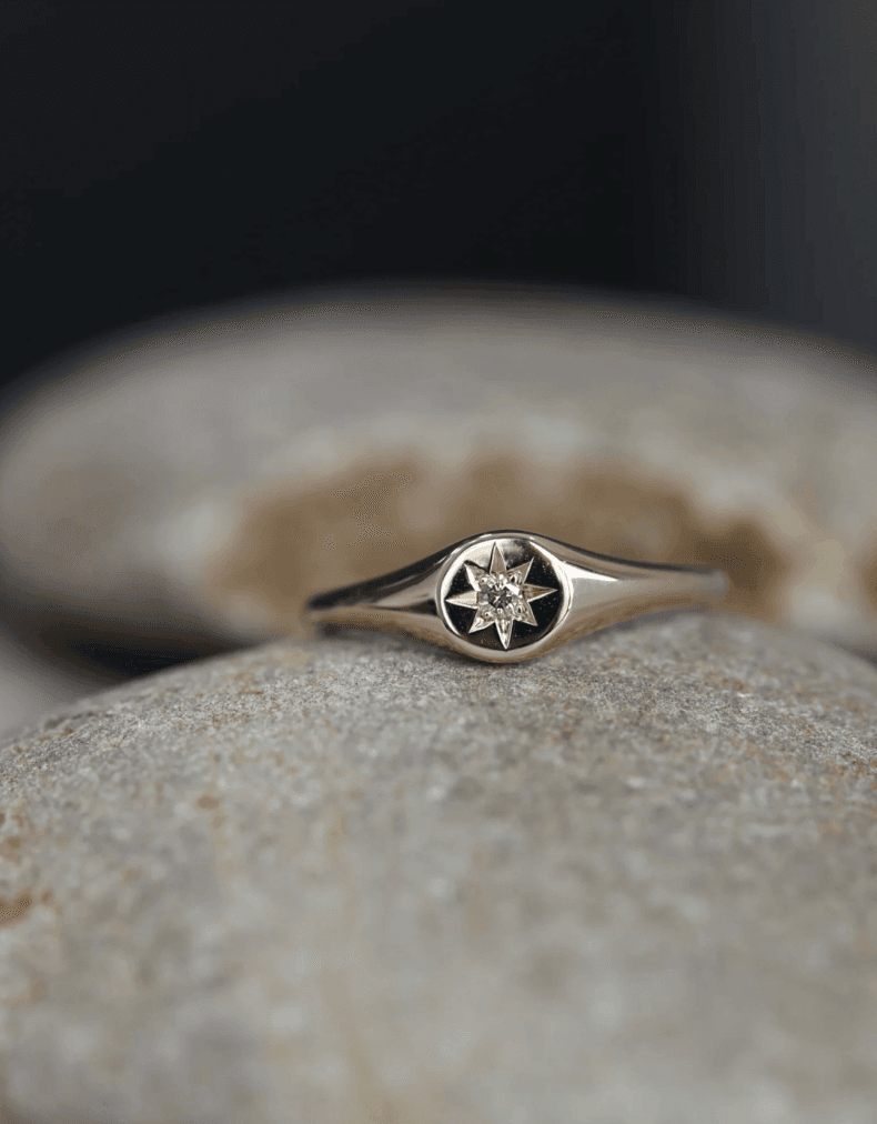 Round Star Set Diamond Signet, $790, Meg Maskell.