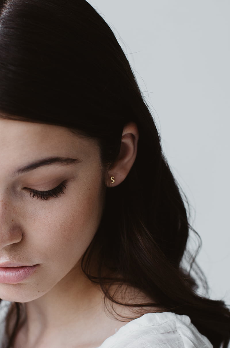 Sophie Store Little Letter Stud Gold, $24. Shop online at Sophie Store.