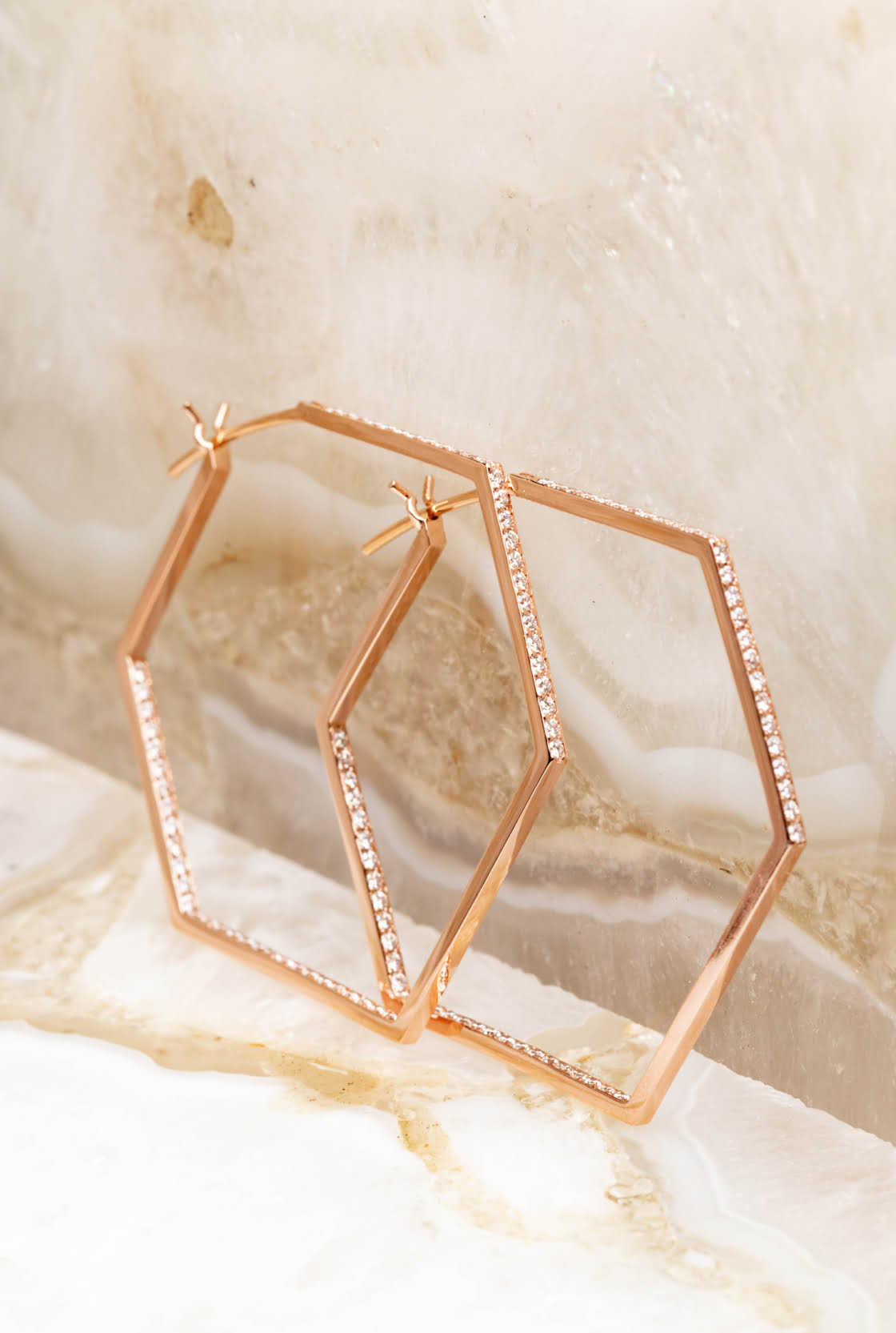 Grew & Co Large Hexagon Hoops in Rose Gold, $5315. Shop online at Grew & Co.