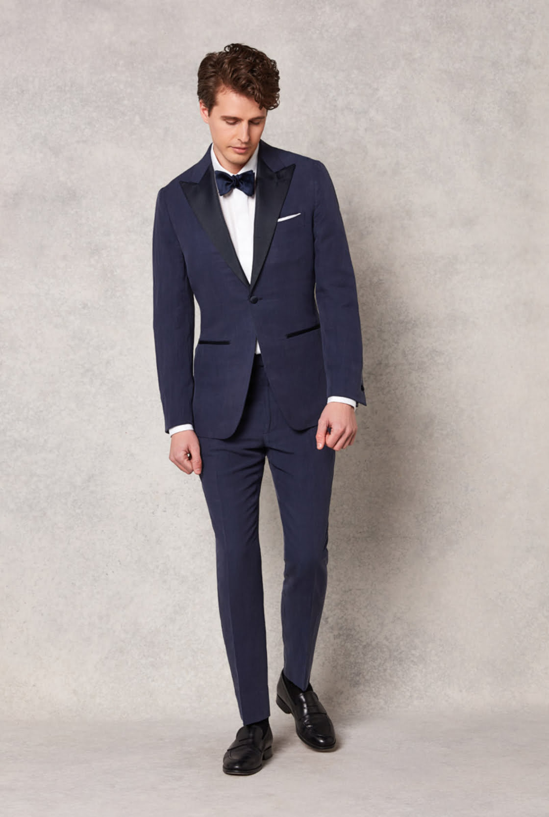 Oscar Hunt Mid Blue Silk/Linen Tuxedo, from $999. Shop online at Oscar Hunt.