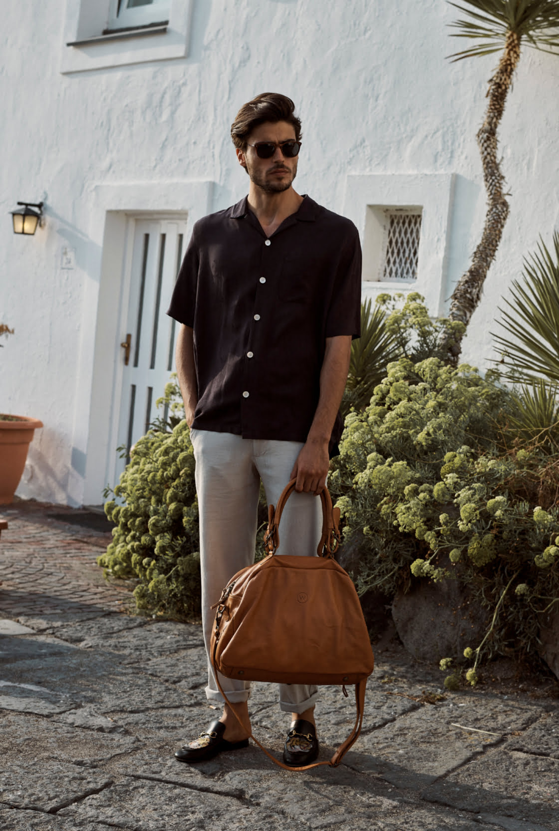 Wanderers Travel Co La Furore Sunglasses in Brown Tortoise $299, The Biarritz Bag, coming December. Shop online at Wanderers Travel Co.