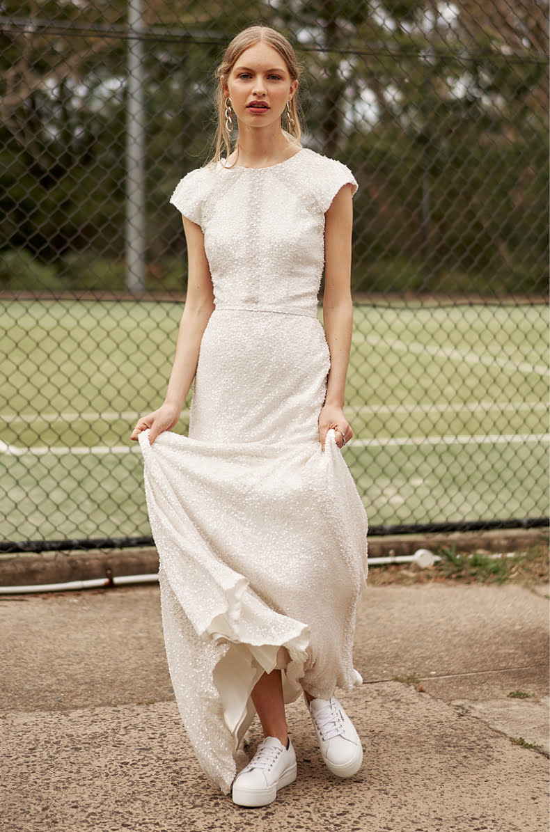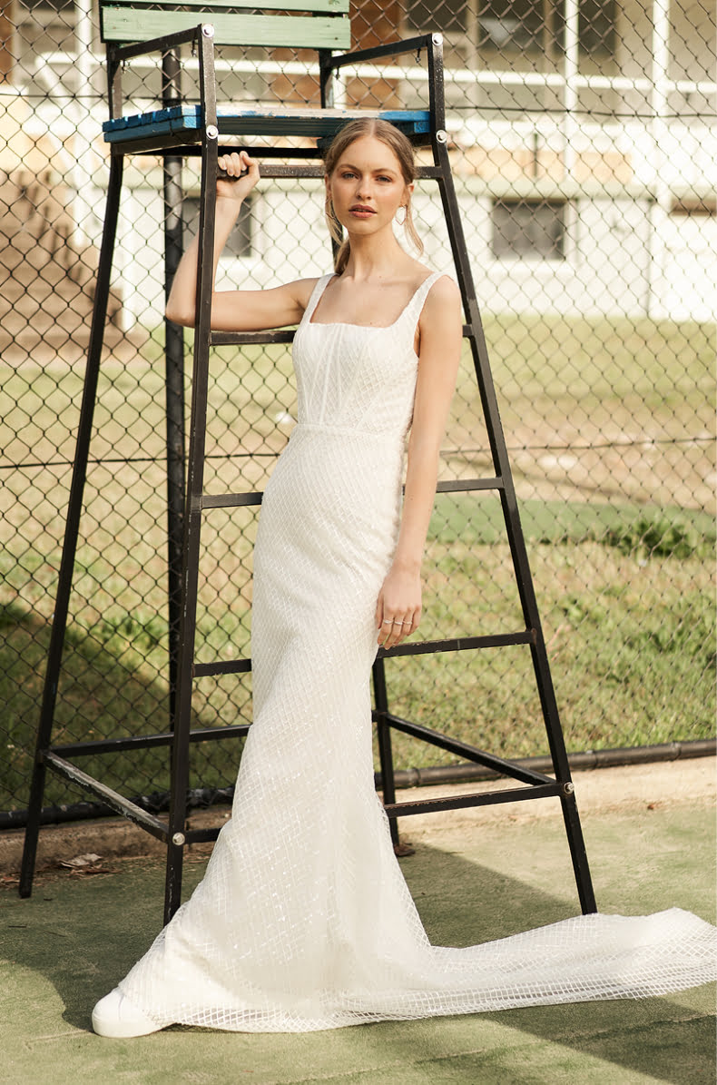 Luci Di Bella and Friend of Audrey serve up short and sweet whilst Grace Loves Lace fulfils our slinky silk fantasy with their Honey Silk Gown. If two pieces are your main vibe, check out the embellished confection below from White Meadow. For gals keen on a sprinkling of sparkle, Karen Willis Holmes has you covered.