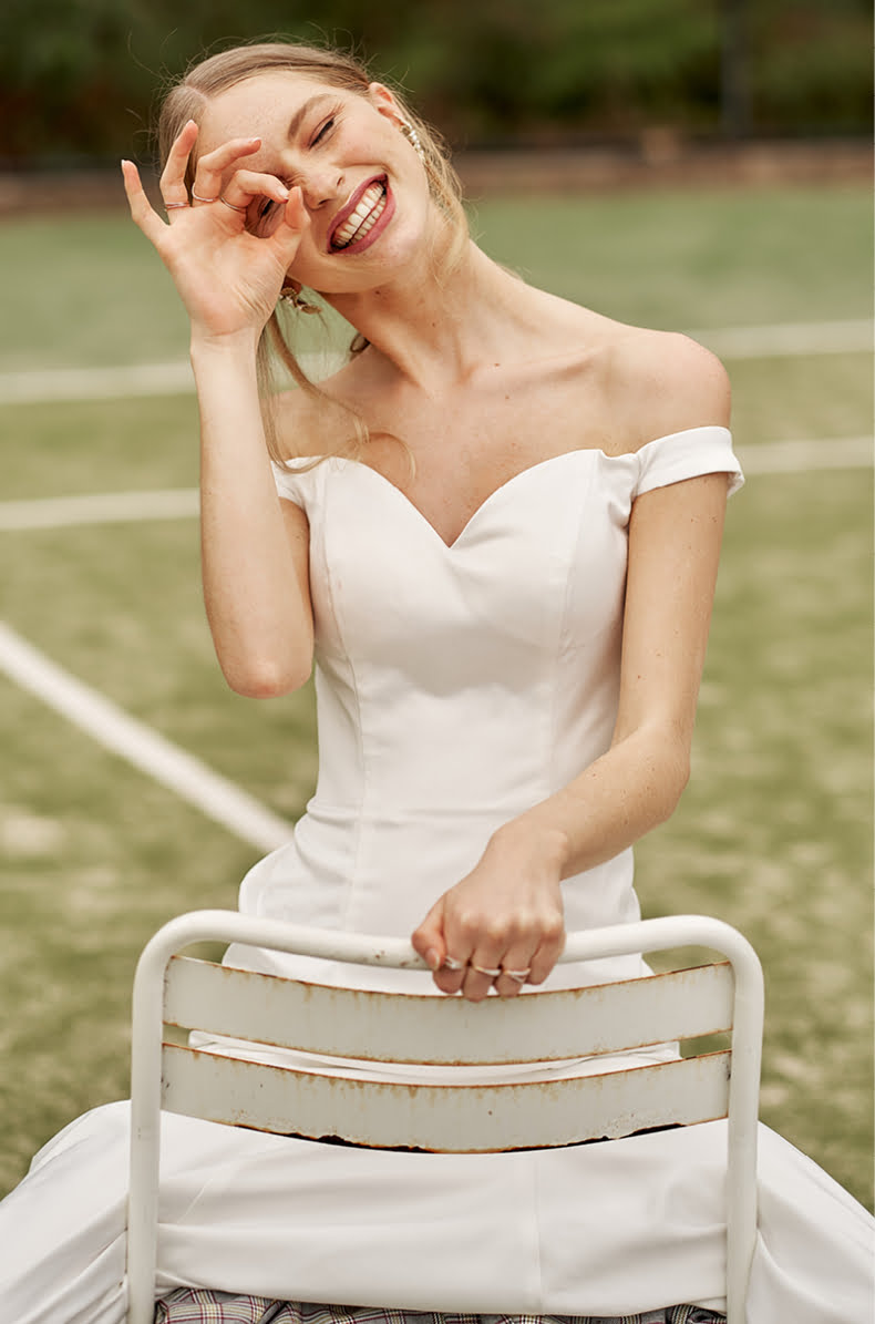 First featured in Issue 27 of Hello May mag, and shot by HM fave Jack Steel, our A Perfect Match shoot features the kind of bridal wear that you can don a sneaker with. We’ve got groovy blouse and pant combos, a couple of shorties and two jumpsuits for good measure. Whether you are on the prowl for a comfy as heck reception outfit or an all-day dreamboat of a gown, you will be sure to find more than a few options below. You will also find a whole heap of relaxed hair and makeup references courtesy of the talented Makeup by Megan, so have those Pinterest boards handy.