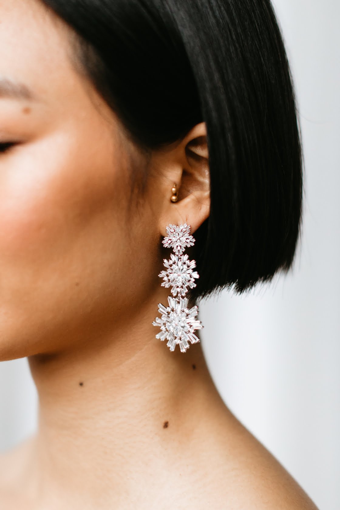 Where do you draw inspiration for your collections? In terms of our earrings, we actually don’t have what would normally be considered ‘collections’ as we prefer to see our pieces as one offering that we add to about once a year. A big driver when we design is to avoid fashion trends that will date and instead aim for pieces that will still look modern and beautiful when brides look back at their wedding photos in 50 years’ time. Another aim is to modernise wedding traditions that our brides feel are dated or tend to be ‘trinkety’. Our first mission was to modernise the ‘something new, something blue’ tradition and we answered it with a topaz stone set in an anklet that can be worn long after a wedding day.
