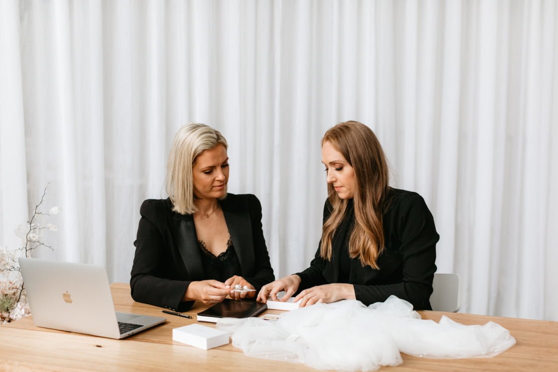 “Our relaxing park meet-ups quickly turned into late-night designing and business planning sessions,” co-founders and directors Sarah Turner Woolfrey and Alison Clouston tell us in between pictures, snapped by the lovely Miranda Stokkel at AG HQ. Keen to know more? Scroll on, dear friends, and see what happened when we sat down with the duo to chat all things bridal accessories.