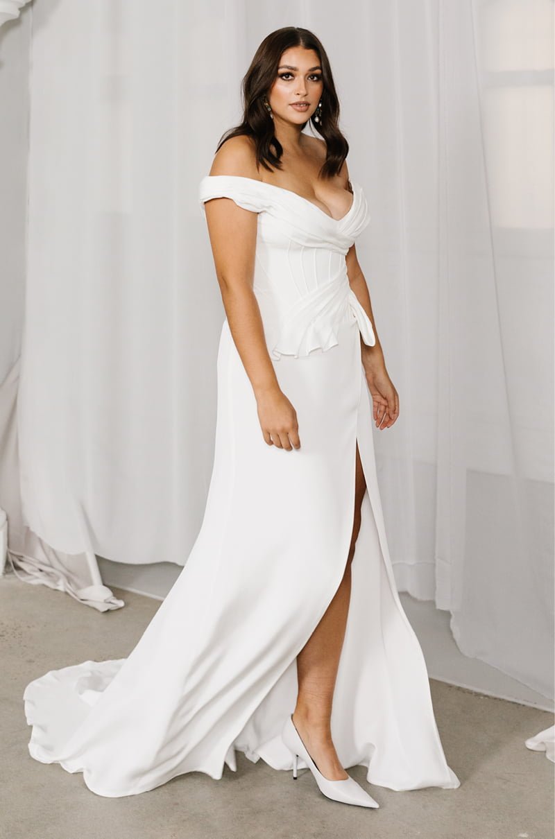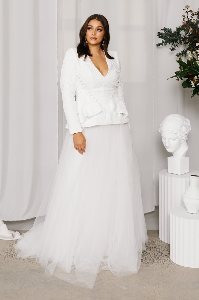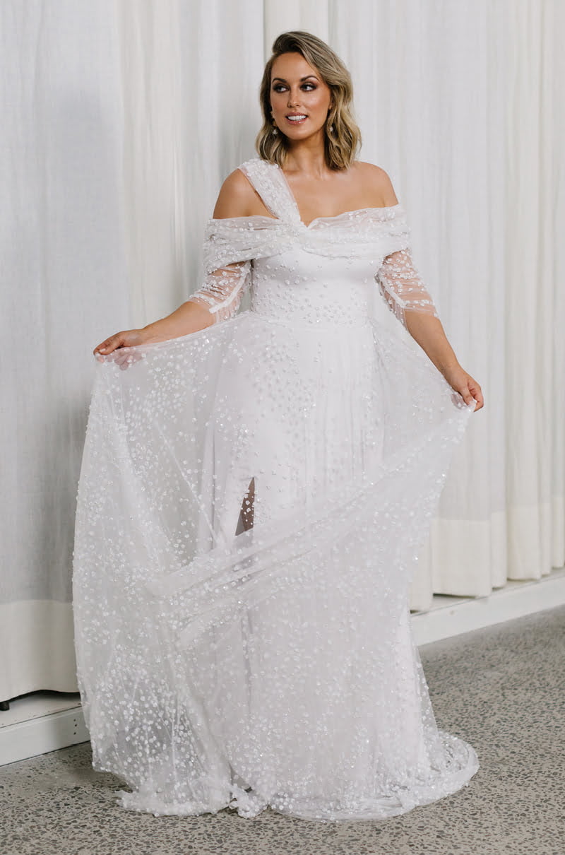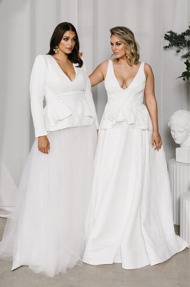 This collection is available in all sizes, made to order in the designer’s Melbourne studio and shipped Worldwide. You’ll also find the gowns in some of our favourite bridal boutiques on Australia’s East Coast, exclusively stocked at Love Marie Bridal Boutique for Sydney brides and if you’re a Brisbane babe, you can make an appointment at Sphere Bridal Gallery, stat.