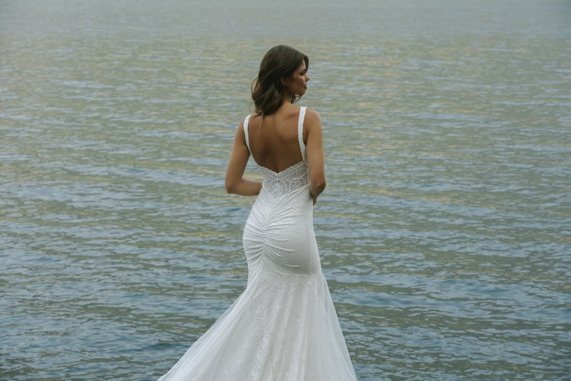 As if creating eight jaw-dropping new gowns (with prices ranging from $2500–$4600), plus two heavenly embroidered veils, wasn’t enough, the much-loved brand has stayed true to its reputation as a pioneer in the style stakes, launching the first-ever wedding dress designed to swim in. Yep, those midnight ‘Just Married’ swims are officially a thing now, and if you’re not totally convinced yet, trust us – the pics prove this is a whole vibe.