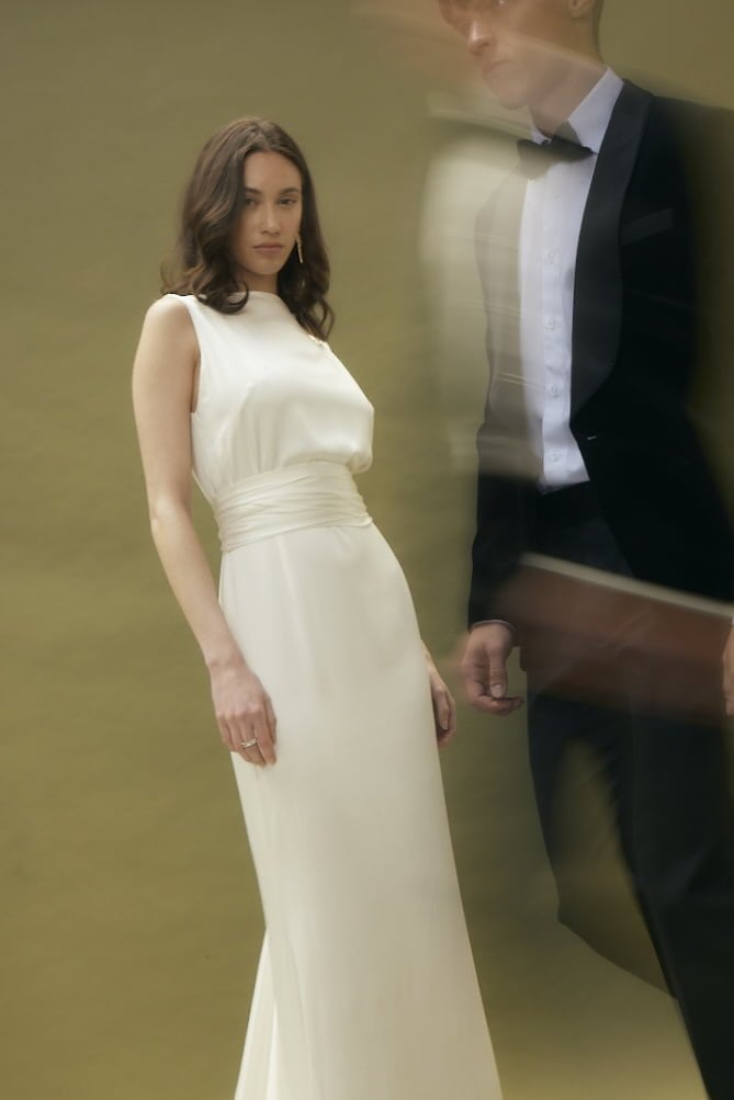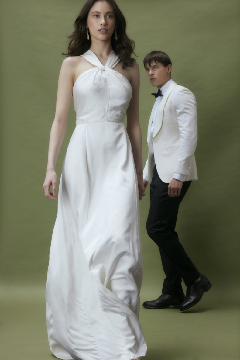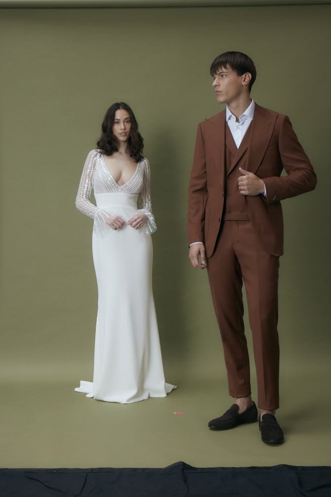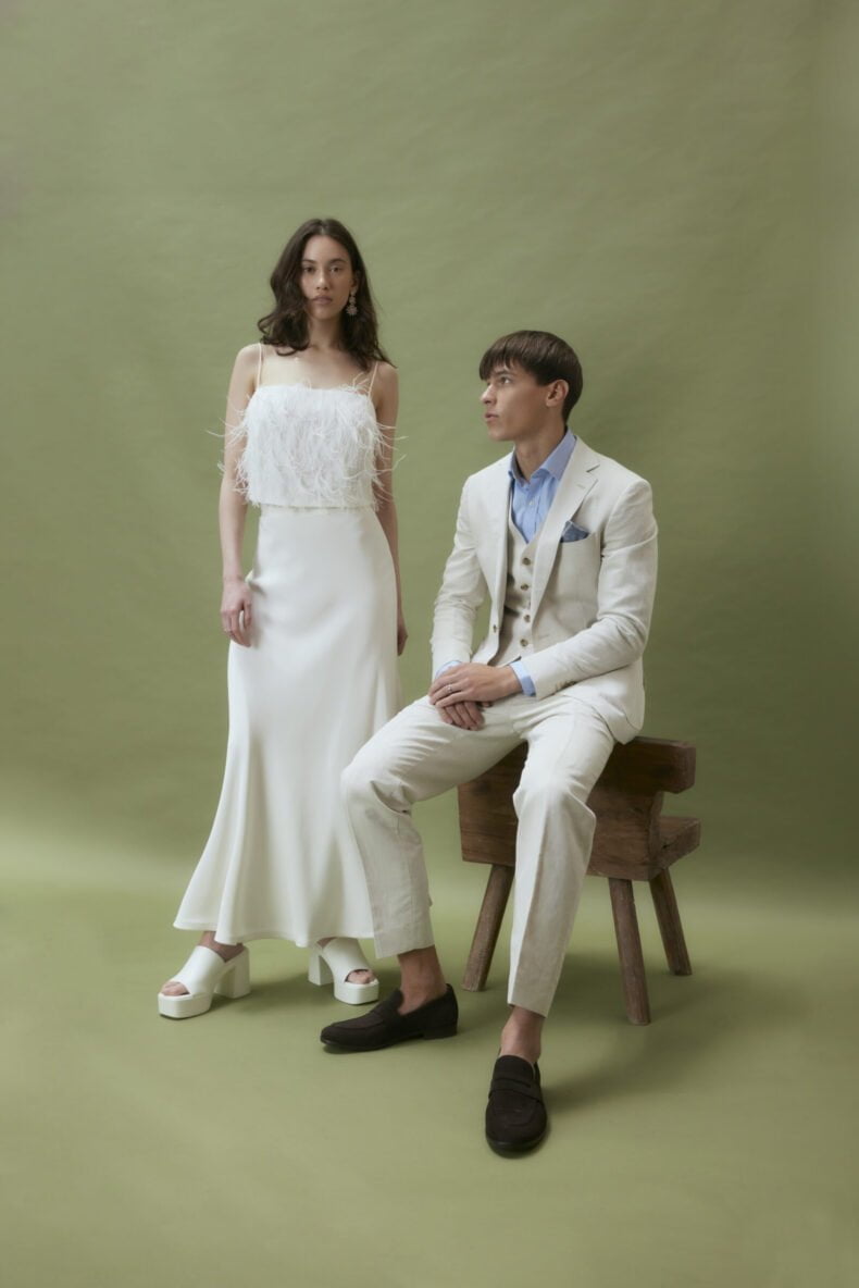 Our models, Mia and Matej, are absolute visions in Lola Varma and Theodore above with the fab Samantha Lee providing the glam for the day. But if these classic and chic looks aren’t calling you, never fear, we have you well covered with a tonne of fashion inspo below. There’s stunning pieces from all our faves – sleek simplicity courtesy of Grace Loves Lace, volume and dreamy detail from Luci Di Bella, as well as suave styling options for the fellas from our mates at M.J. Bale.