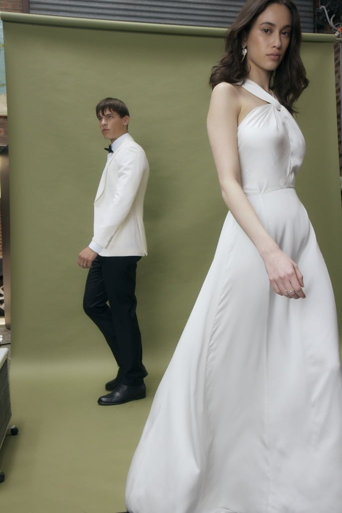 You know we just love a fashion editorial here at Hello May and today we’ve got something pretty darn epic for you, folks. We got into the studio with the marvellous Mr Josh Carr-Hummerston to shoot some seriously glorious gowns and suits (we’ve got all bases covered here today), which we invite you to lay your peepers on right here, right now. We’ve also included some BTS snaps from the shoot so you get even more glimpses of these beautiful pieces and how it all comes together.