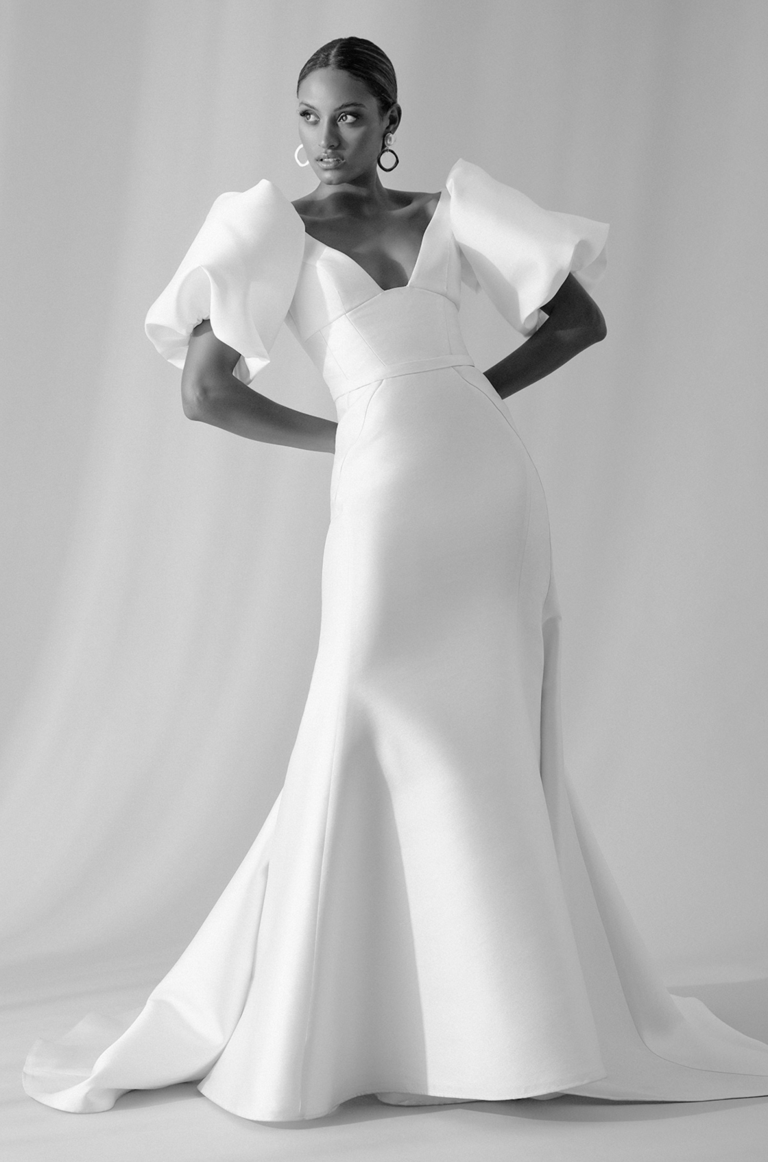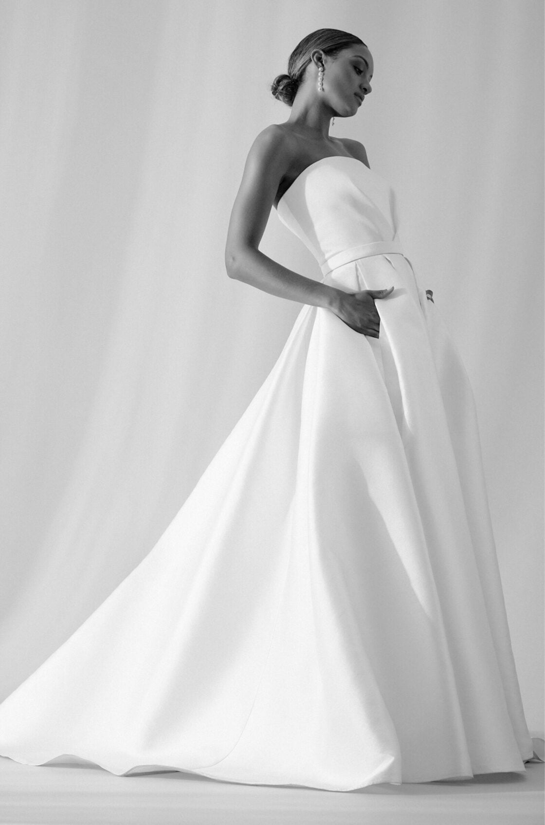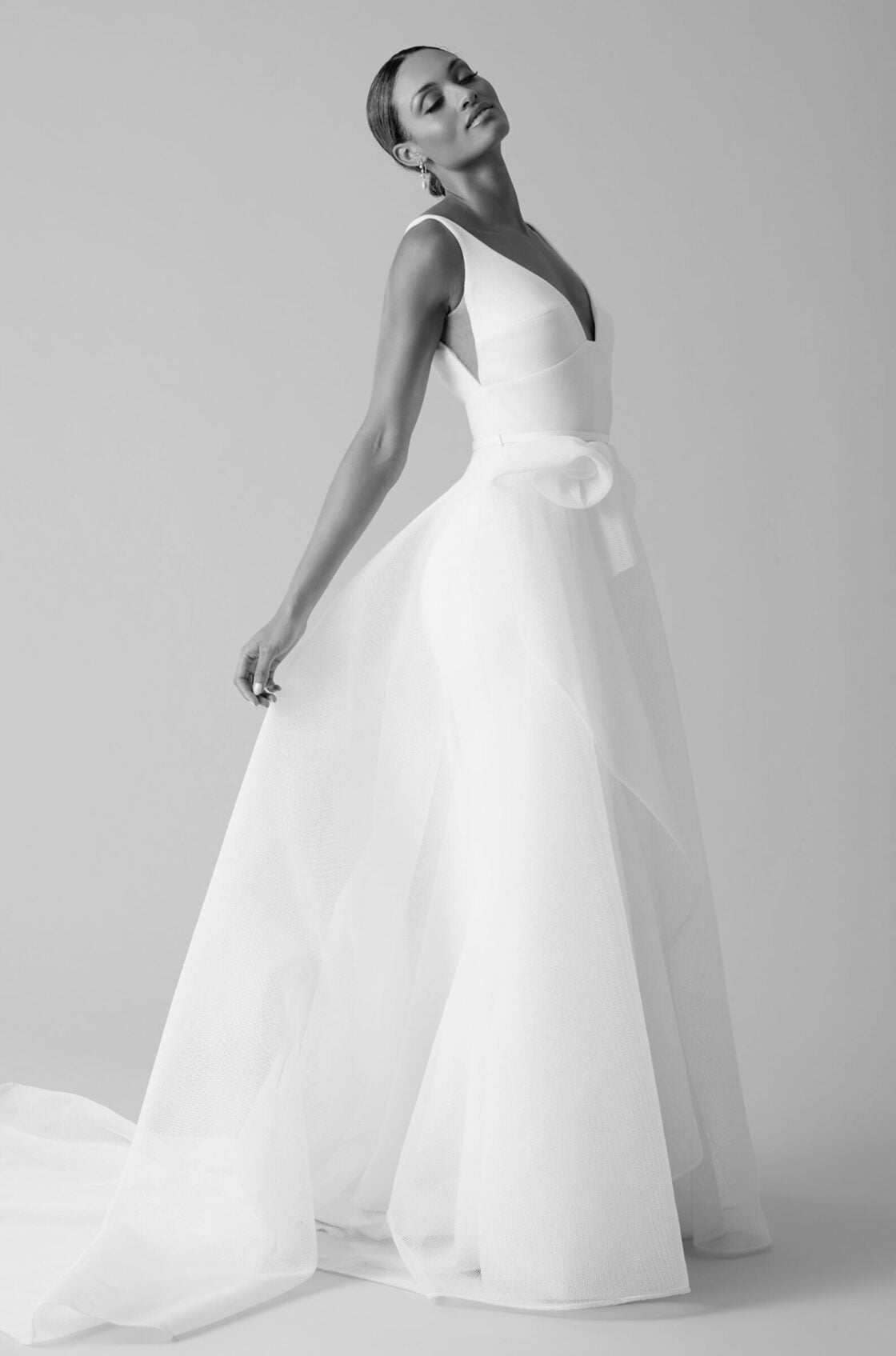 “At Karen Willis Holmes, we value and celebrate the individuality of every bride. That is why we are dedicated to creating pieces that allow every woman to express themselves and feel unique on their special day,” says the designer. “Within this collection are stunningly unique gowns that range from fit and flare shapes with plunging necklines to strapless beaded ballgowns and everything in-between.”