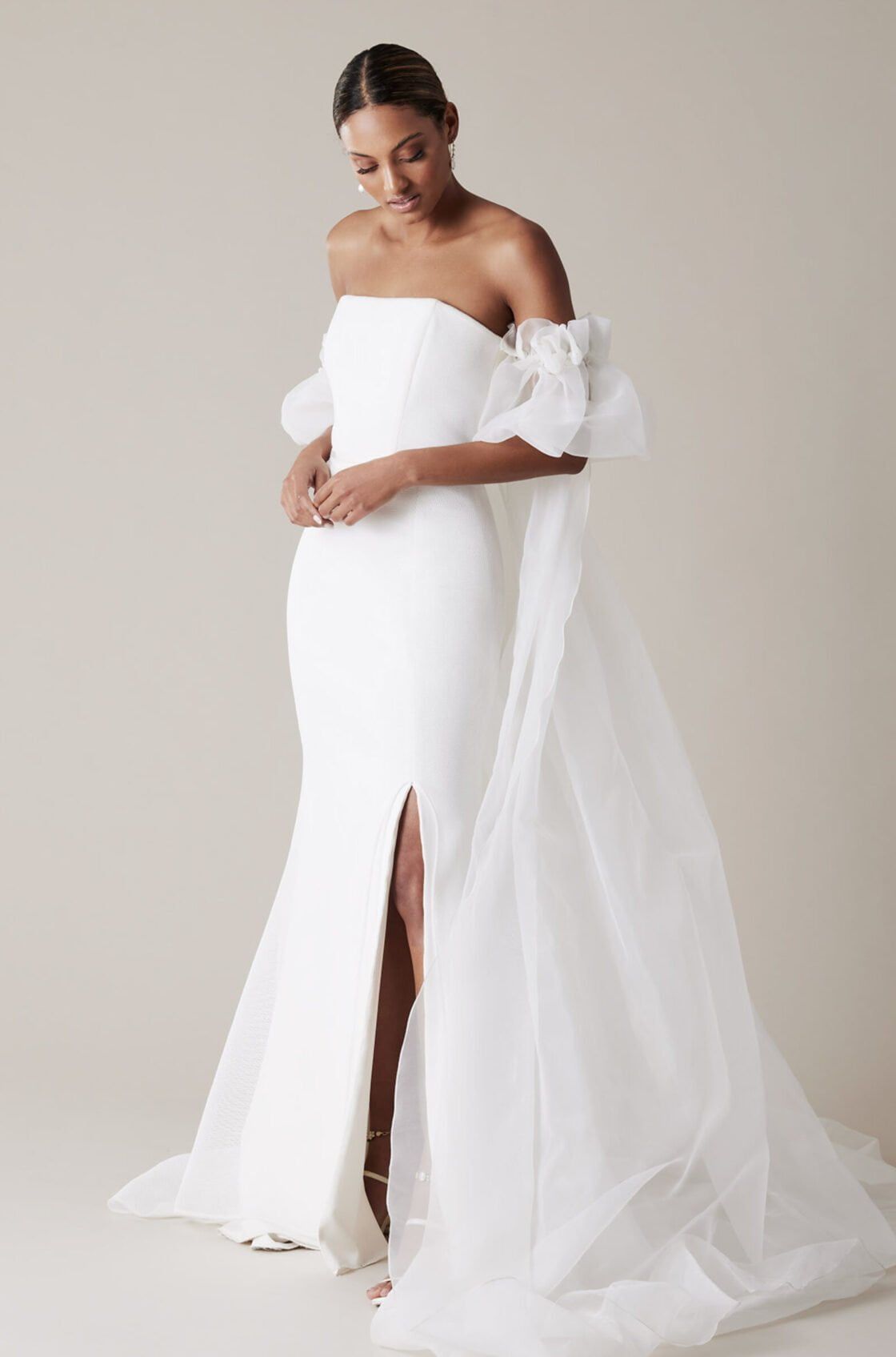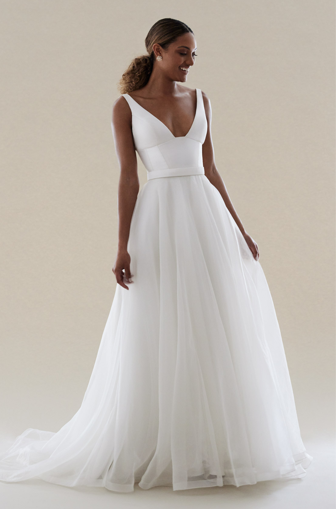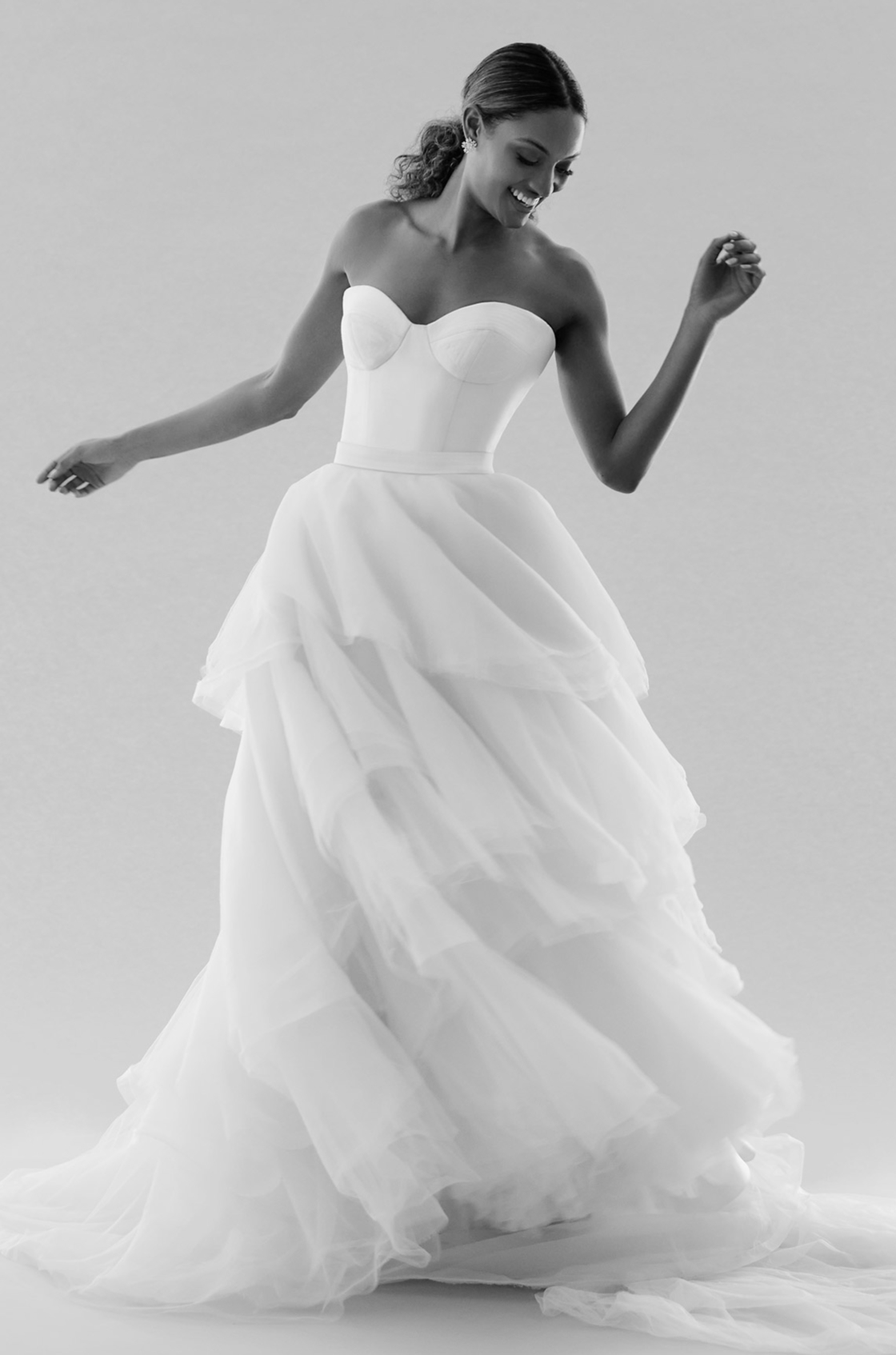 “At Karen Willis Holmes, we value and celebrate the individuality of every bride. That is why we are dedicated to creating pieces that allow every woman to express themselves and feel unique on their special day,” says the designer. “Within this collection are stunningly unique gowns that range from fit and flare shapes with plunging necklines to strapless beaded ballgowns and everything in-between.”