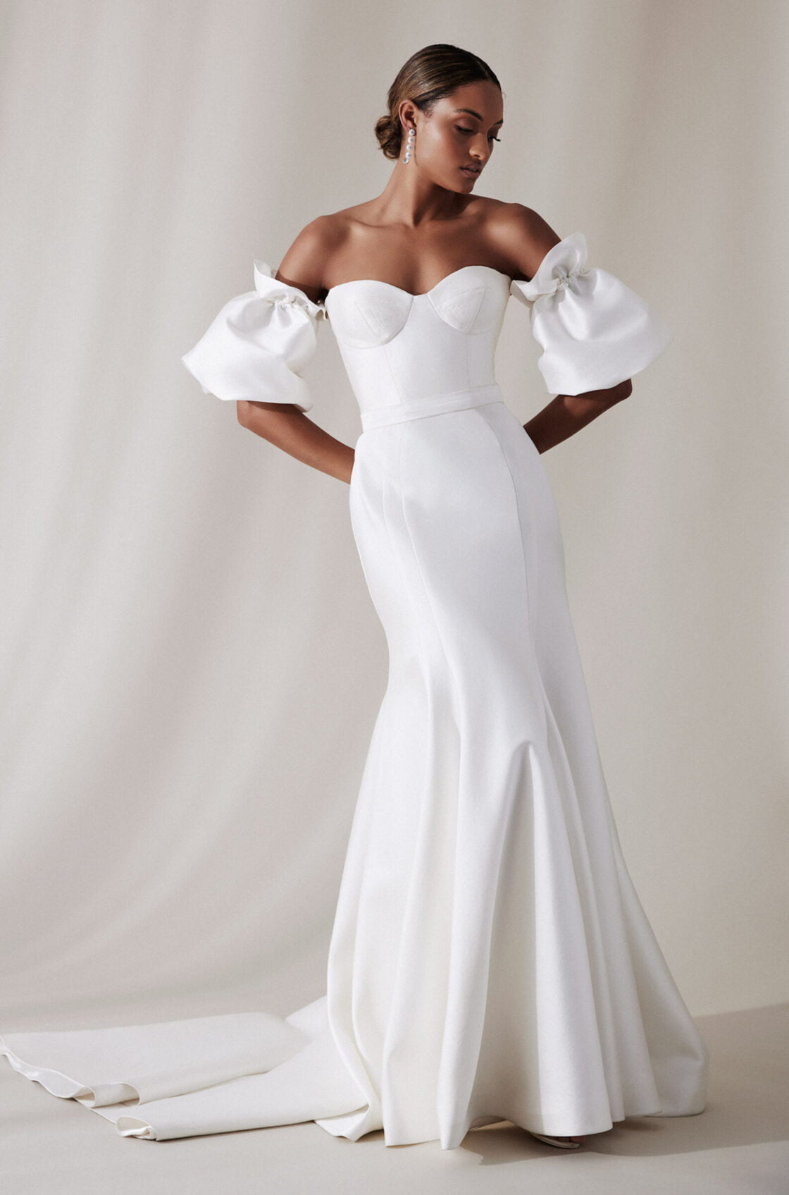 Prices sit around bodices from $1390, skirts from $1600 and full combinations from $2990-$5490 and sizes are 4-16. If you’re keen to try on, book into their incredible Alexandria boutique (NSW), stat. They also have boutiques in Melbourne, Brisbane, Perth and New York (you’ll find details here) and are stocked in some of our go-to boutiques, Amante Bridal (VIC) and Mrs Fray (ACT).