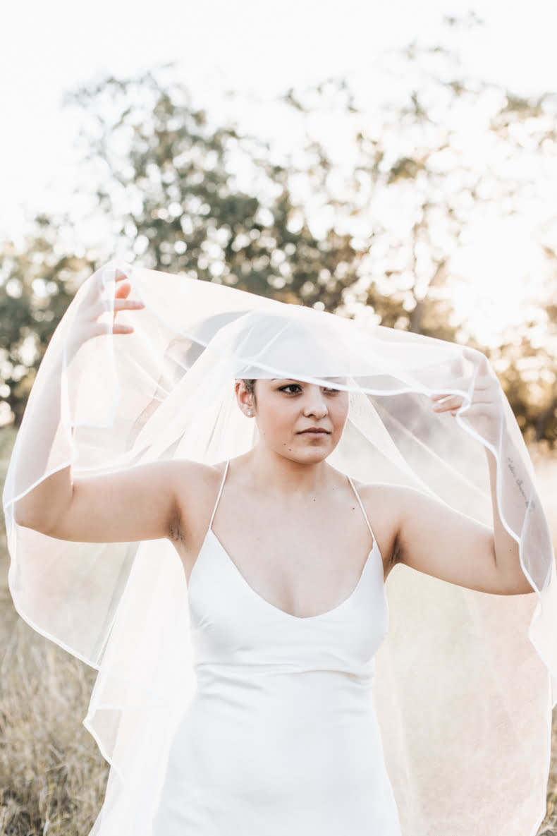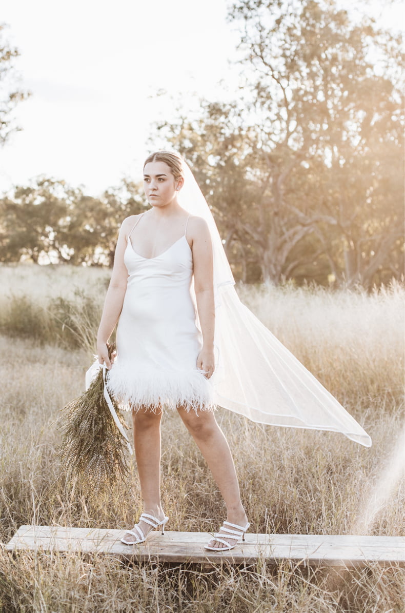 Expect flirty feathers, chic suits (shorts and pants, people), a sexy, thigh-skimming silk number and even a jumpsuit, with cute cut-outs. Basically, there’s something for everyone. But don’t just take our word for it… We spoke to the designer, of course, who eloquently explains, “The reason why I make wedding gowns is simply because I am passionate about dressing women and making them feel like the most fabulous version of themselves. It is so important for our brand that all women are represented and celebrated and we wouldn’t be here today without our diverse brides and brand message. We are here to make a positive change in the industry and we make sure the first step to achieving this is using beautiful women from all over the globe to represent Karen Willis Holmes.”