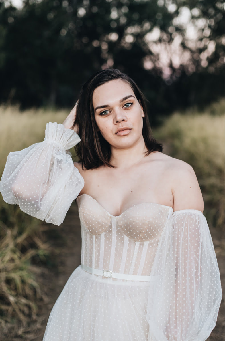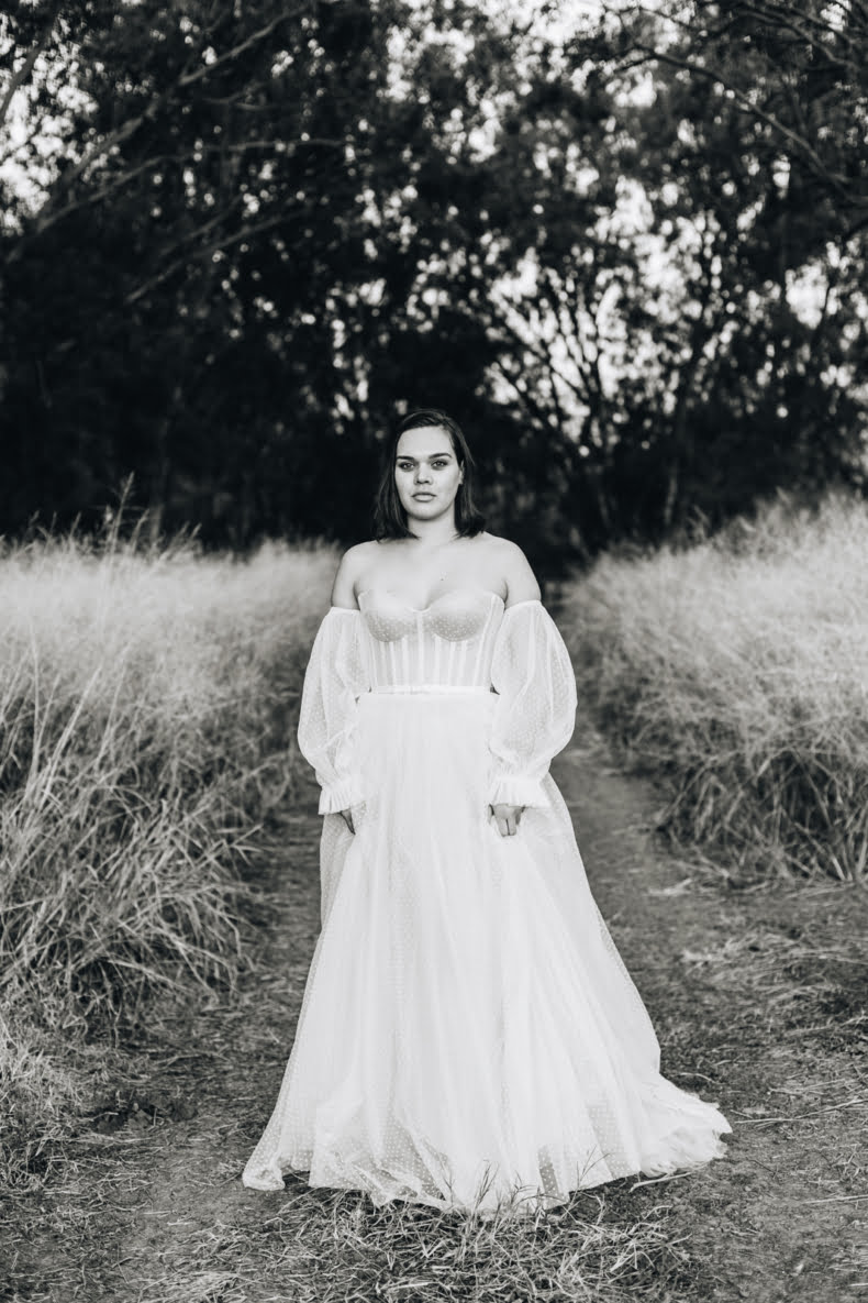 Shot in the picturesque, country town of Moree, the collection was captured by none other than photographer, Abbie Mellé, with styling by Georgia Ashdown at Chelsea Gardens, consult from Aboriginal Art Gallery, Yaama Ganu and beautiful blooms by local vendor, Phoebe of Phoebe’s Flowers, Food & Home. “We were so excited to partner with Chelsea Gardens on this extra special shoot and showcase our beautiful landscape with Indigenous Australian girls wearing our gowns and feel honoured that the community in Moree welcomed this with open arms,” says Karen.