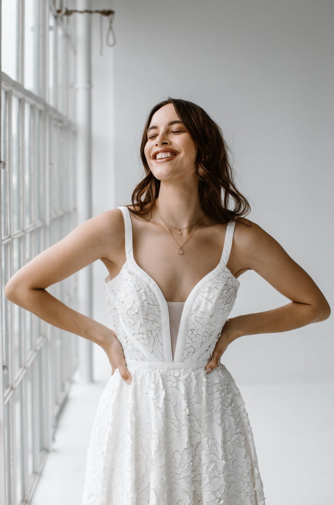“This collection really bloomed over lockdown last year and seeing the struggle the wedding industry (brides/ designers and vendors) had to go through,” says the designer. “We wanted to create a collection that showcased the love and inspiration we have and receive from every incredible woman/ bride who has joined the Kellylin family. Lots of soft, elegant and fun expression pieces to give the world a good look at how diverse and unique we are.”