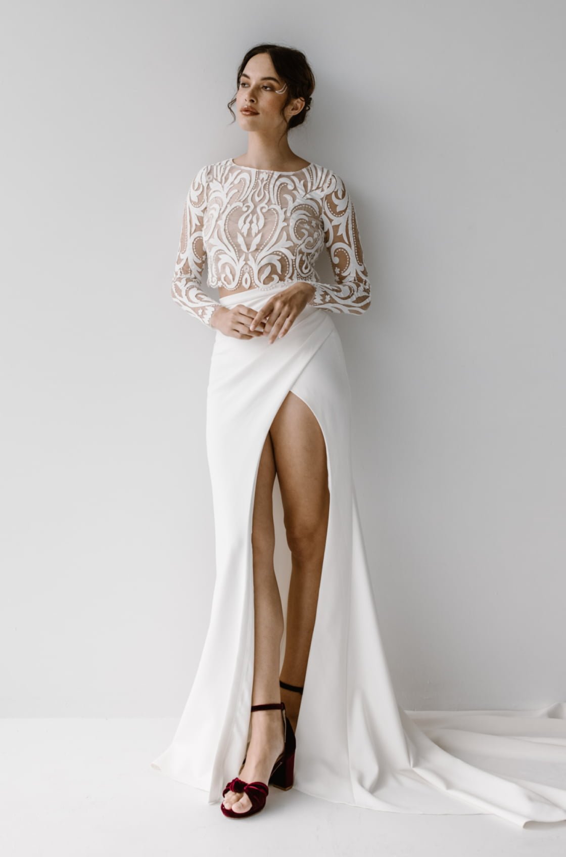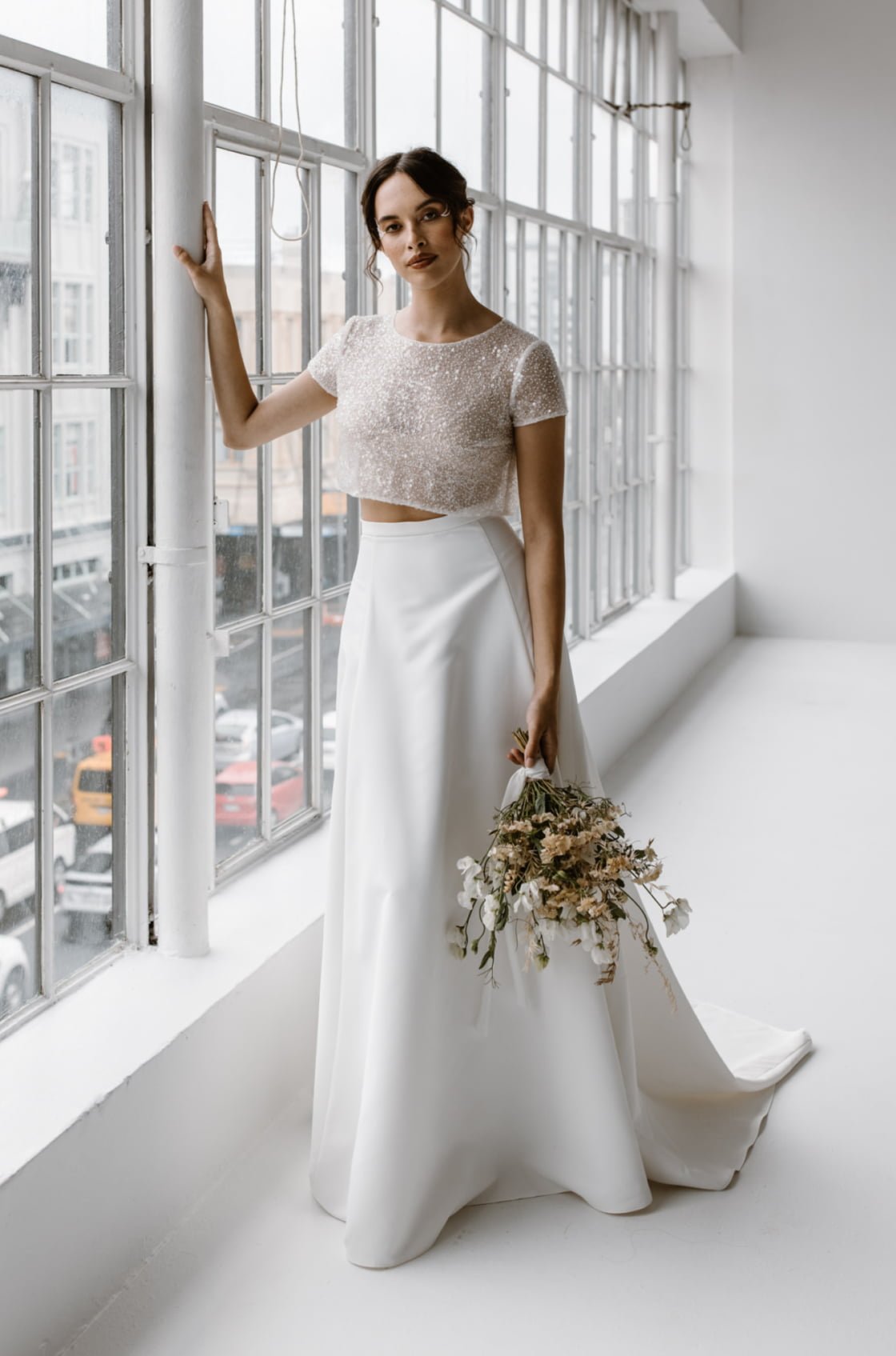 If you want to try on these stunning gowns in all their glory, you’ll find the New Zealand flagship boutique in Auckland and multiple locations in Australia (including one of our go-to South Australian boutiques, The Bride Lab) as well as the UK. There’s multiple collections, as well as veils, capes, detachable skirts and bows and you’ll find the 10 gowns and seven separates that make up this collection below, so scroll down for all. If you want even more, head to their Directory listing with us here, or check them out in one of our recent fashion shoots here. But first…