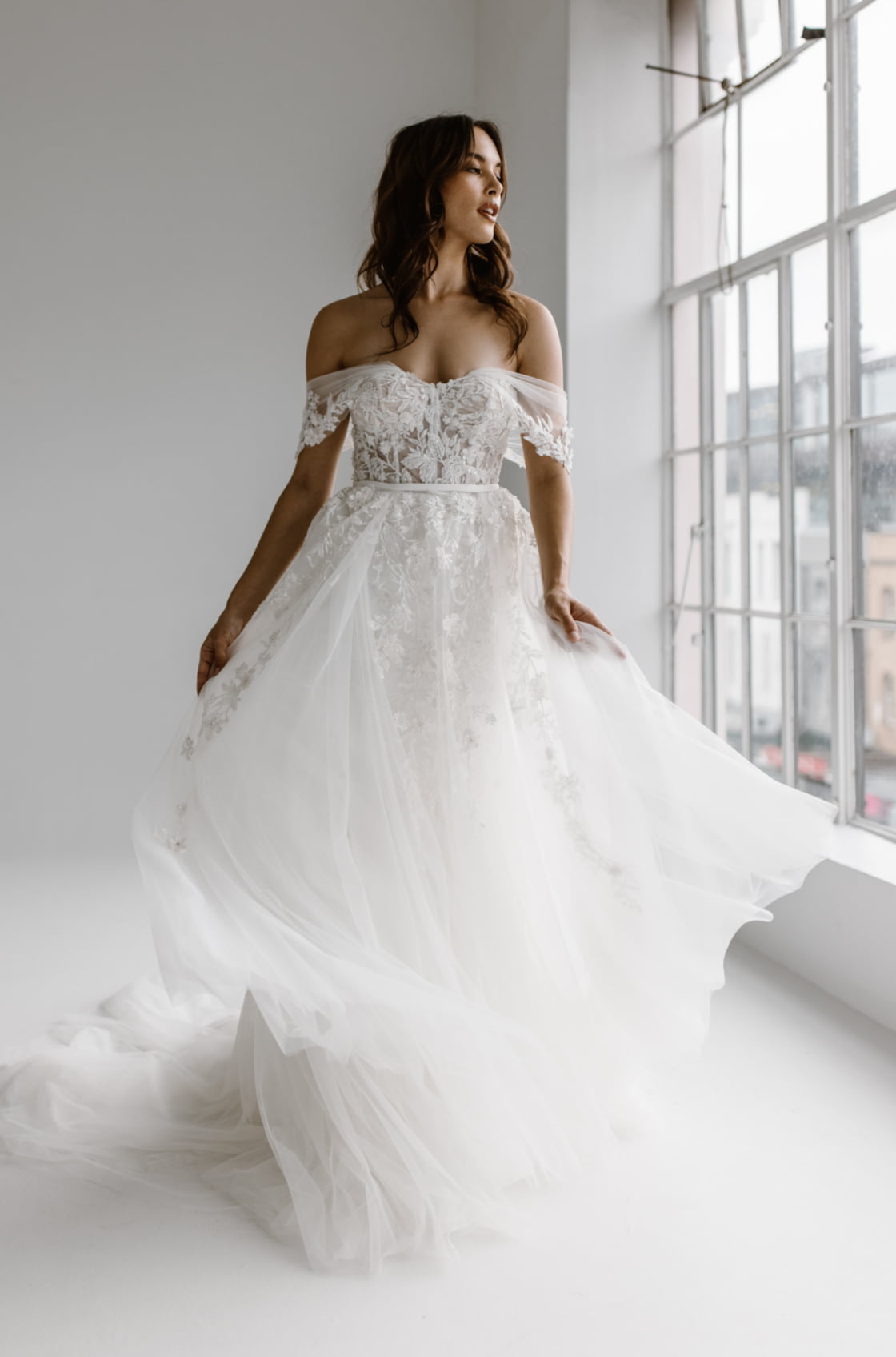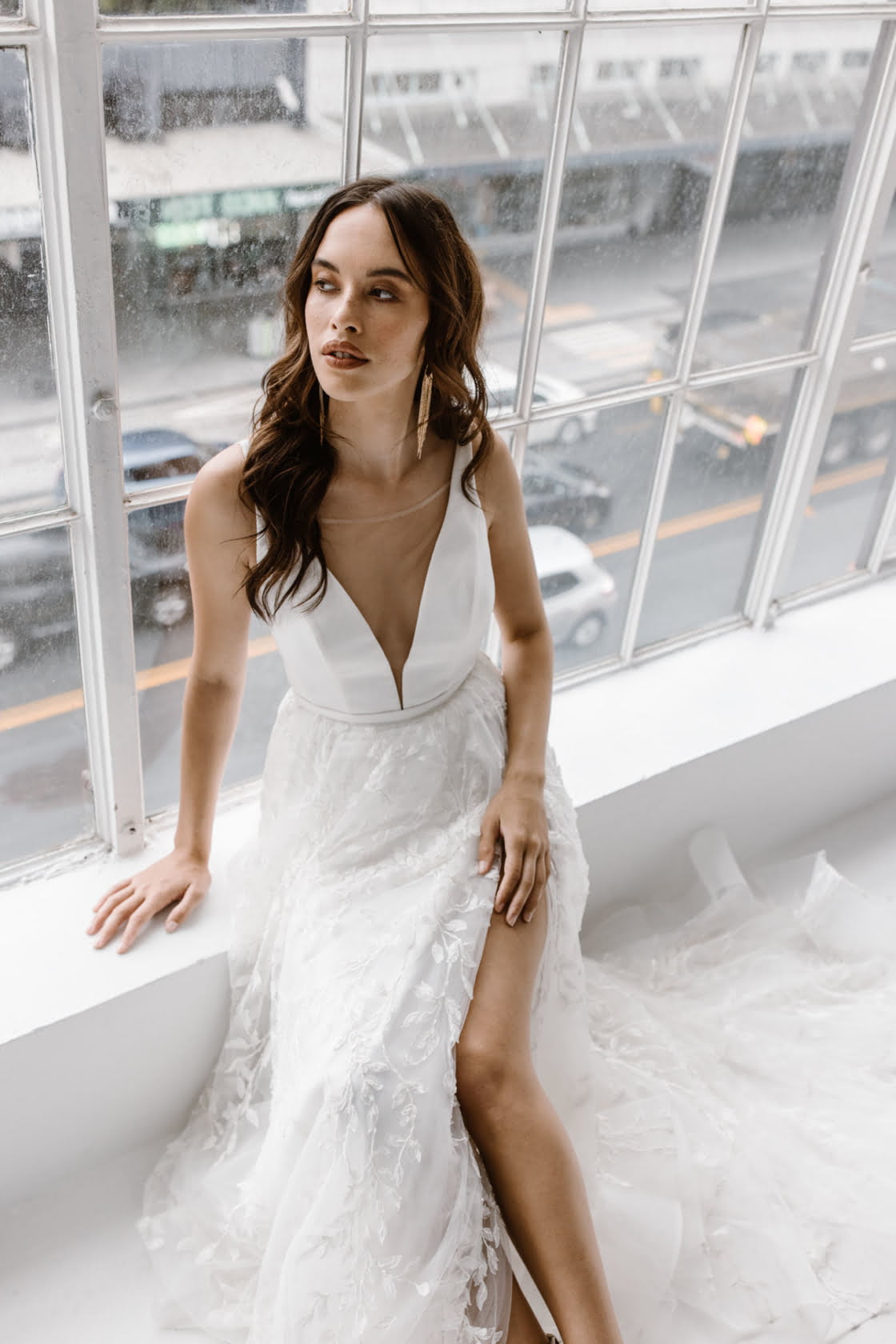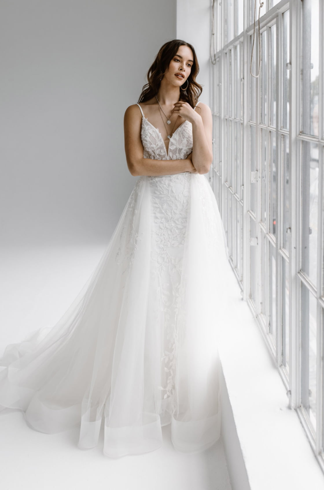 If you want to try on these stunning gowns in all their glory, you’ll find the New Zealand flagship boutique in Auckland and multiple locations in Australia (including one of our go-to South Australian boutiques, The Bride Lab) as well as the UK. There’s multiple collections, as well as veils, capes, detachable skirts and bows and you’ll find the 10 gowns and seven separates that make up this collection below, so scroll down for all. If you want even more, head to their Directory listing with us here, or check them out in one of our recent fashion shoots here. But first…