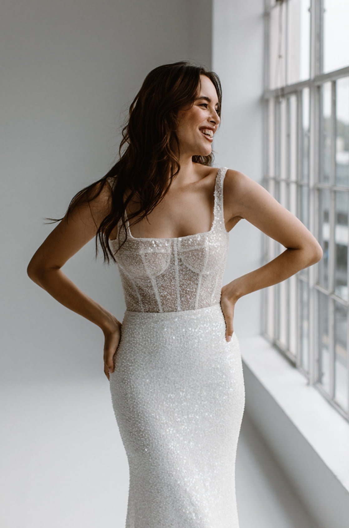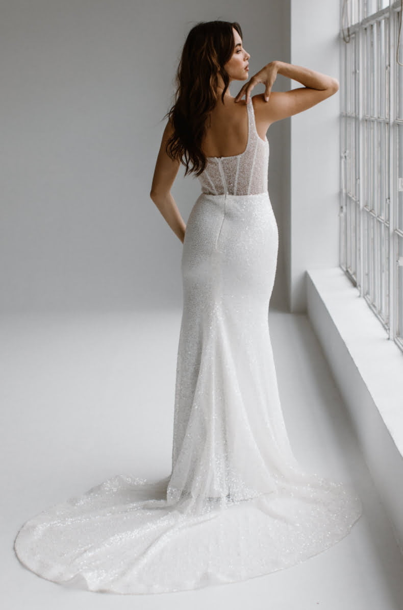 “This collection really bloomed over lockdown last year and seeing the struggle the wedding industry (brides/ designers and vendors) had to go through,” says the designer. “We wanted to create a collection that showcased the love and inspiration we have and receive from every incredible woman/ bride who has joined the Kellylin family. Lots of soft, elegant and fun expression pieces to give the world a good look at how diverse and unique we are.”