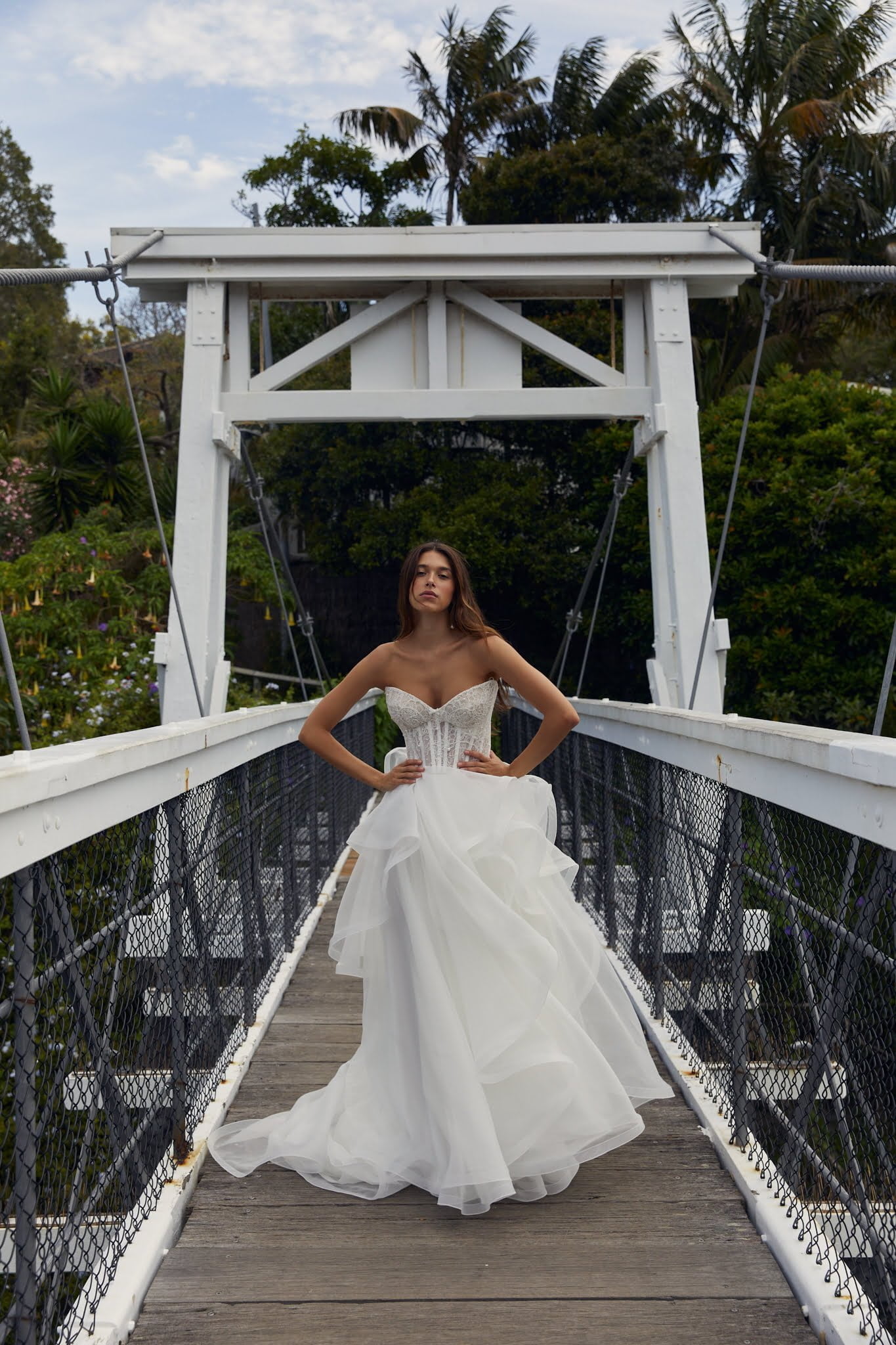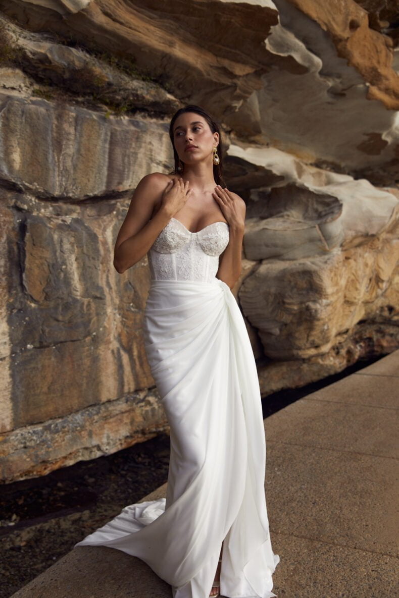 You’ll find this gorgeous range in the Karen Willis Holmes boutiques in Sydney, Melbourne and Brisbane as well as at KWH online, with prices starting from $1000 for the separates. By the way, have you checked out KWH’s other dreamy collections? We def recommend taking a squiz – her ELOPE and LUXE ranges are tdf. Girl is on fire! You can also find real brides who are donning her dresses time and time again (with rave reviews), underneath their Directory listing with us here. Enough from us, time to scroll…