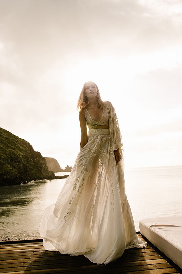These gowns are for the woman who is looking for something more – a gown she can dance the night away in. These feather-light dresses range from, “the discreetly chic to nymph-like and sensual, L’eto Bridal delivers languid silhouettes with just the right touch of drama in the details. Each garment is carefully considered for a dynamic woman who loves expressing her singularity and uniqueness.”