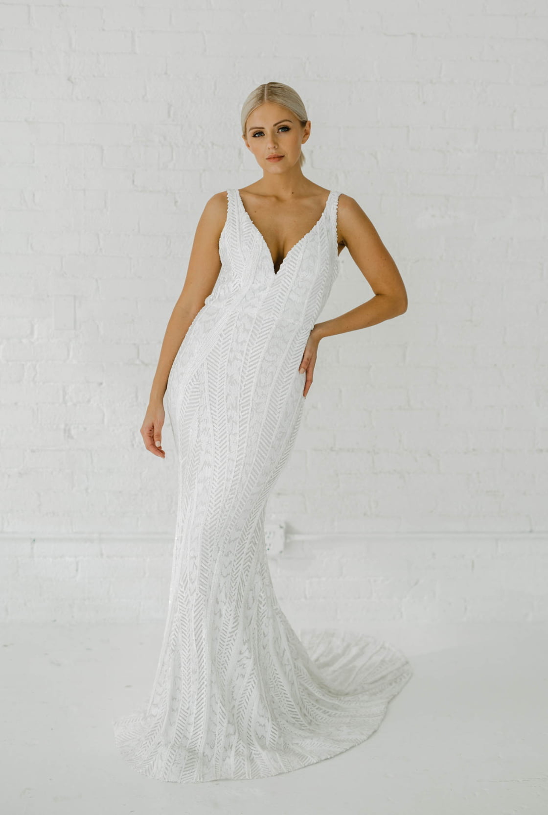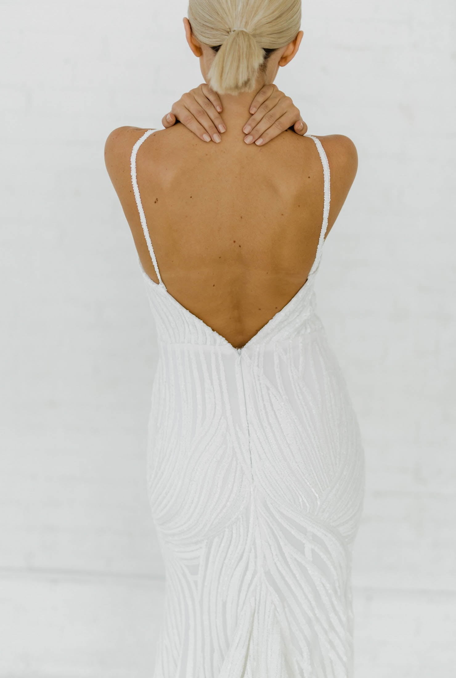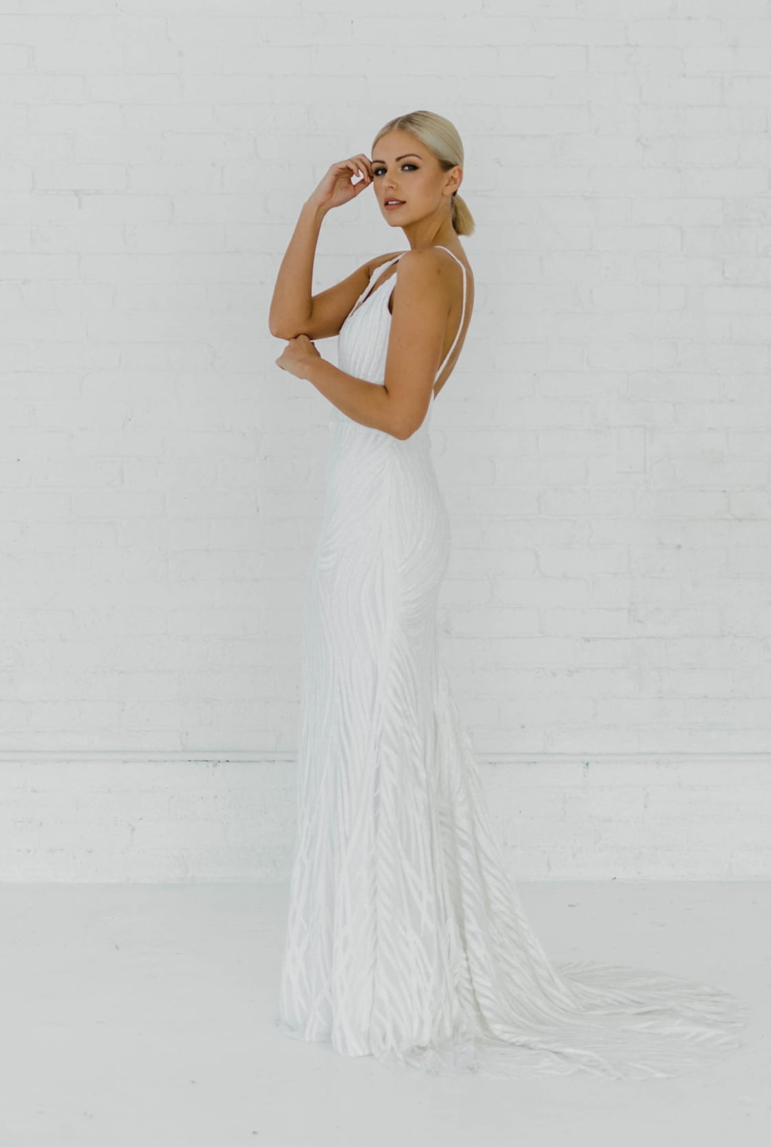 “Also popular is her stretch sequin gowns,” says Amy. “Gorgeous for the glitzy girls without the weight and with the extra comfort. Super easy to move, walk and sit.” Sizes range from US0-18, so go on, scroll down to see the collection – we don’t doubt you’ll be picking up the phone to book in before you know it.