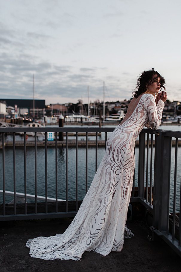 A gorgeous range of gowns that speak to the bohemian bride, this new collection from the New Zealand label uses a range of graphic lace pieces and feminine silhouettes. We’re loving the plunging back of the North Gown, and the beach gypsy style of the Odssey Gown.