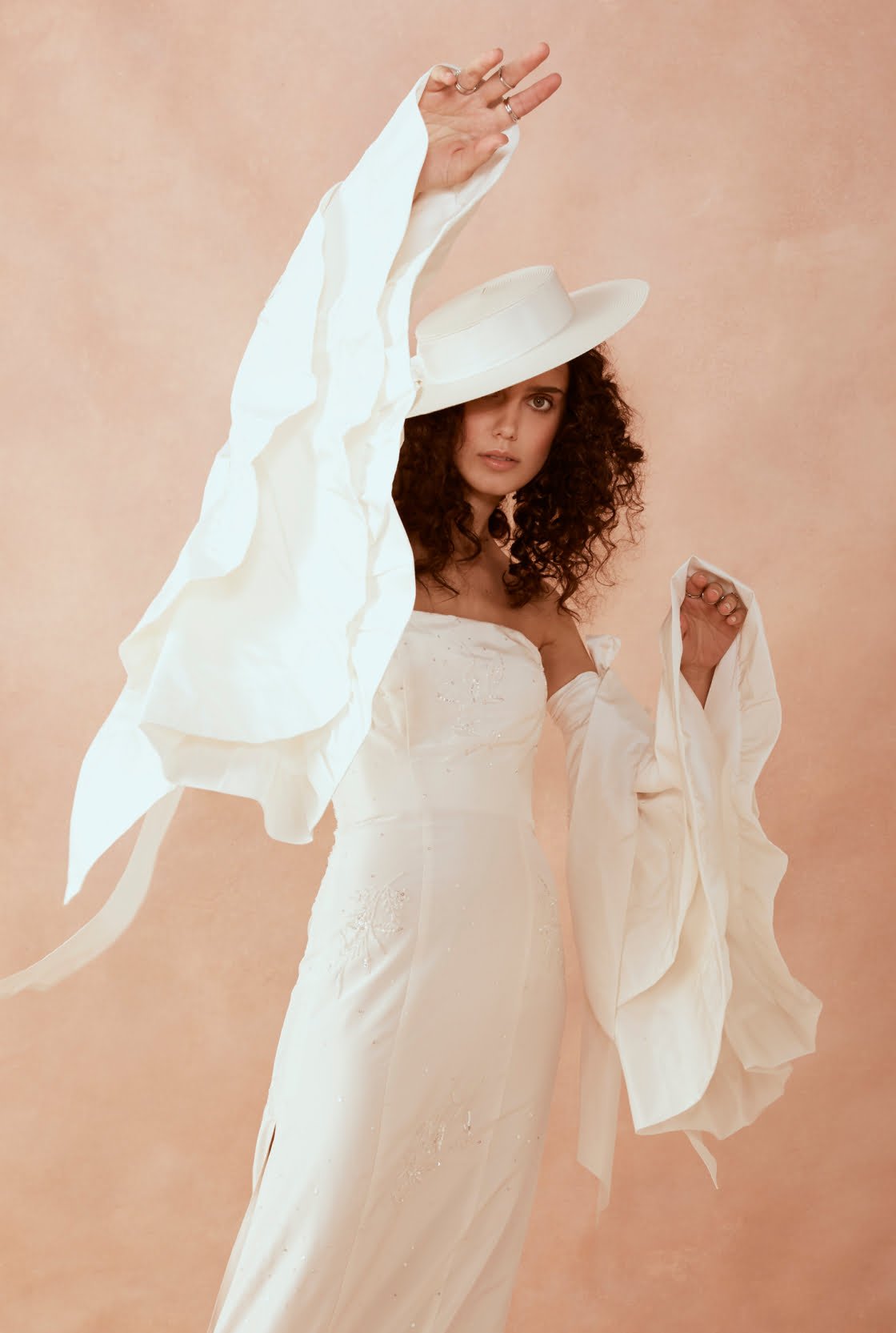 The shoot is anything but simple, covering everything from a pink beaded gown (we’re looking at you, Alca Line Bride), to over-the-top-in-the-best-way sleeves from the ever-chic L’eto Bridal. There’s surprise lace detailing from our friends over at Daisy by Katie Yeung and an intricate, sexy number, thanks to a cool collab between KYHA and Queensland’s Sphere Bridal Gallery.