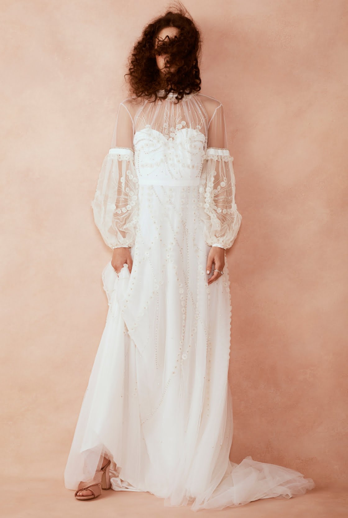 Charlie Gown, $7600, Bo & Luca. Pippa Heels, $199, Senso.