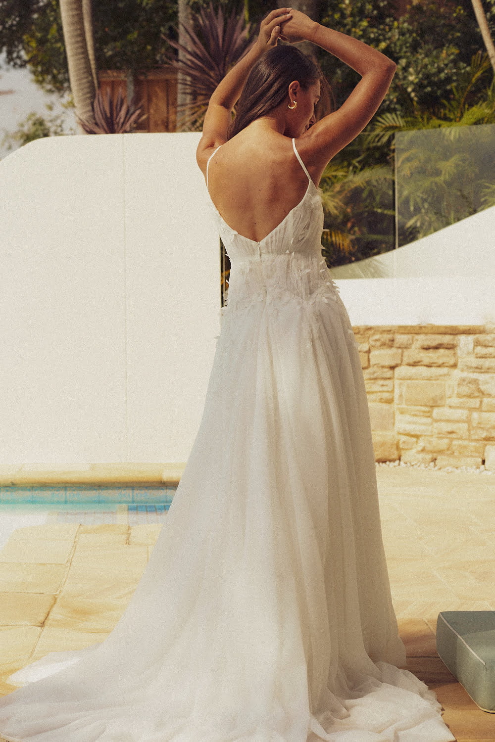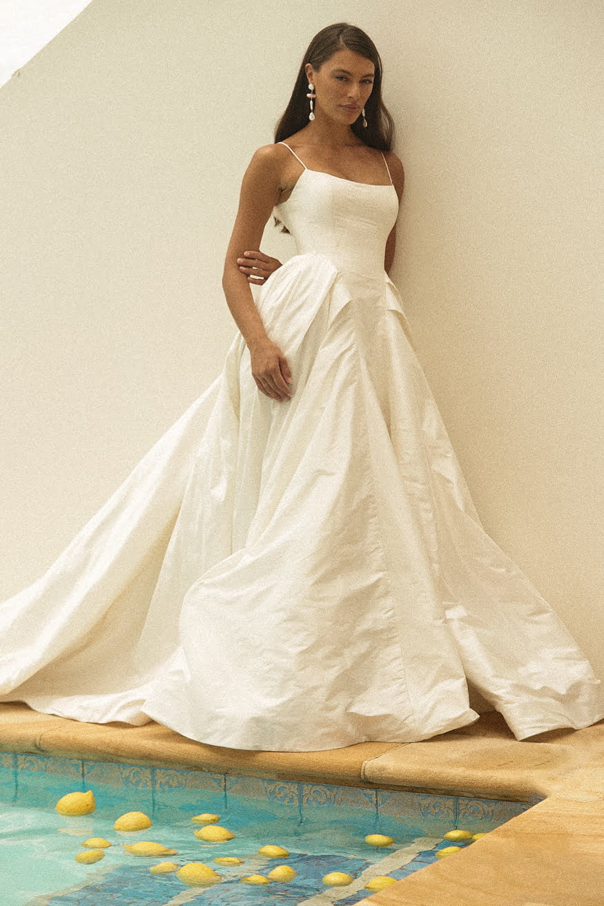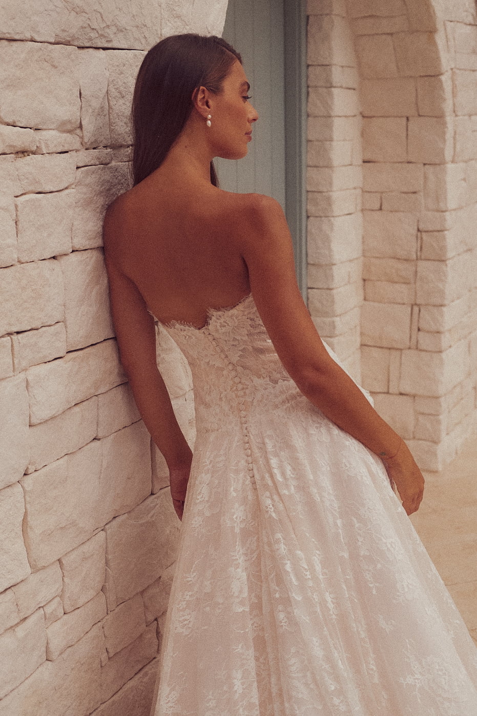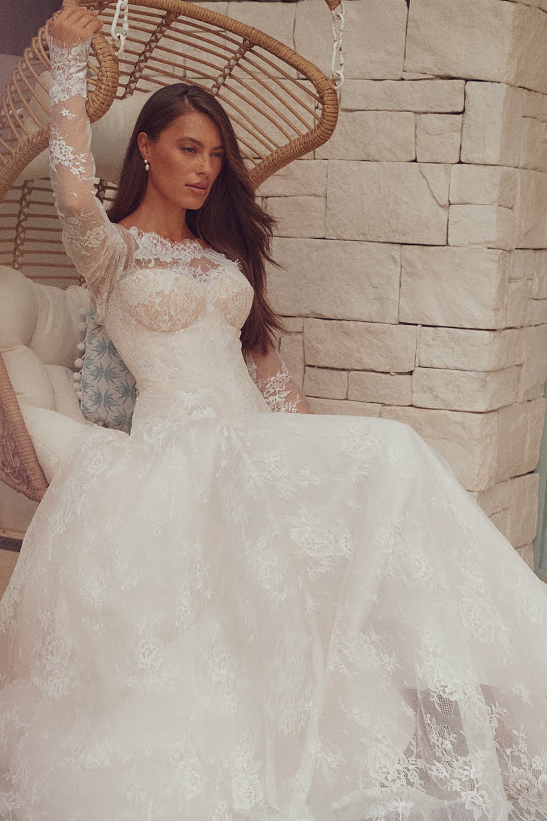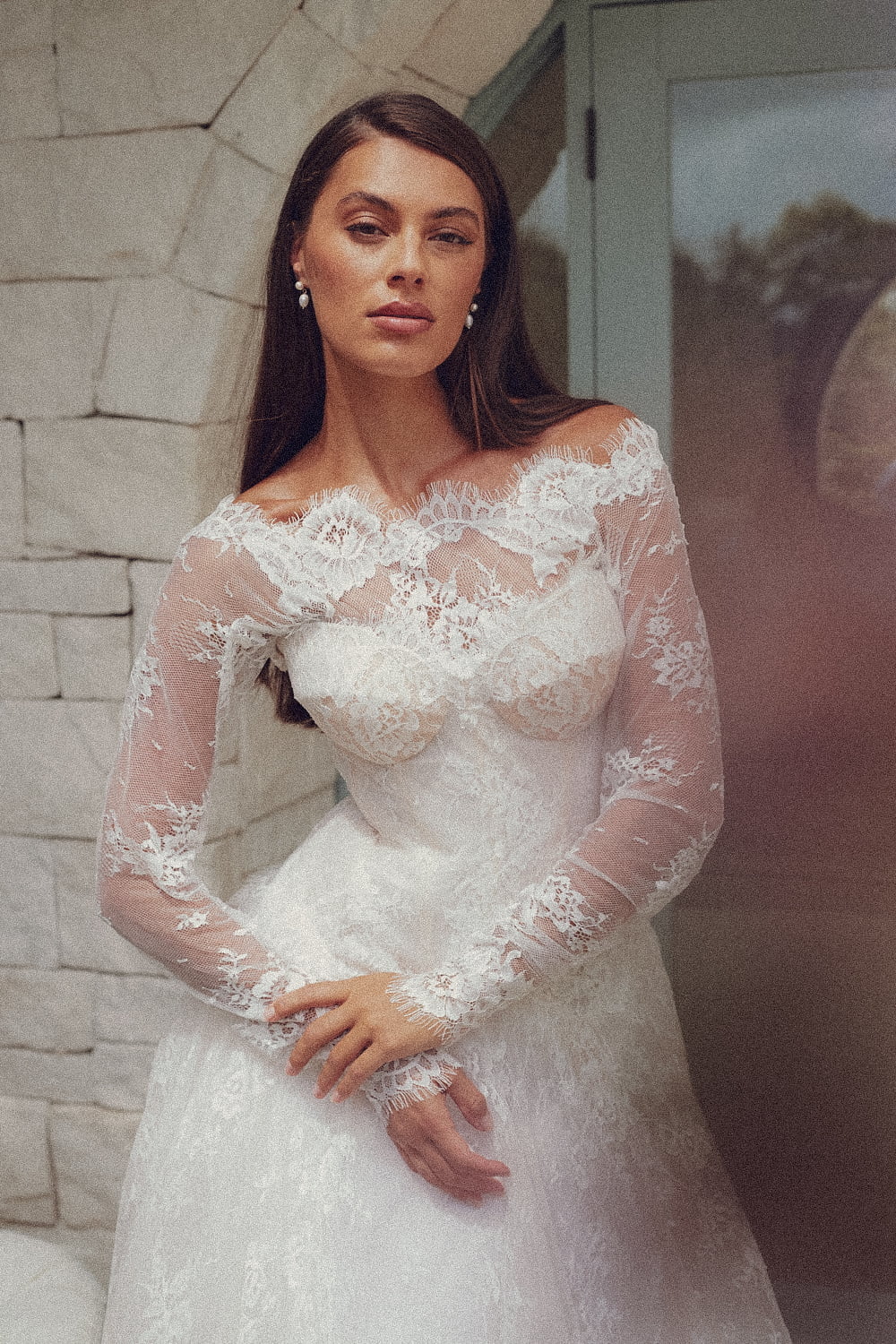 Exhale is the name of the 2024 range, which features 11 new couture gowns and one lace shrug, each exquisitely crafted from luxurious laces and silks, with a focus on detail (seriously, the craftmanship in this collection is next-level good), all with the intention to empower brides to feel like the best version of themselves.