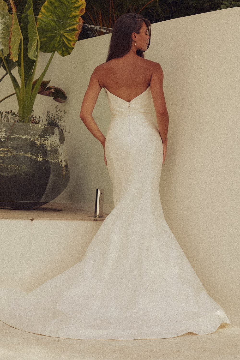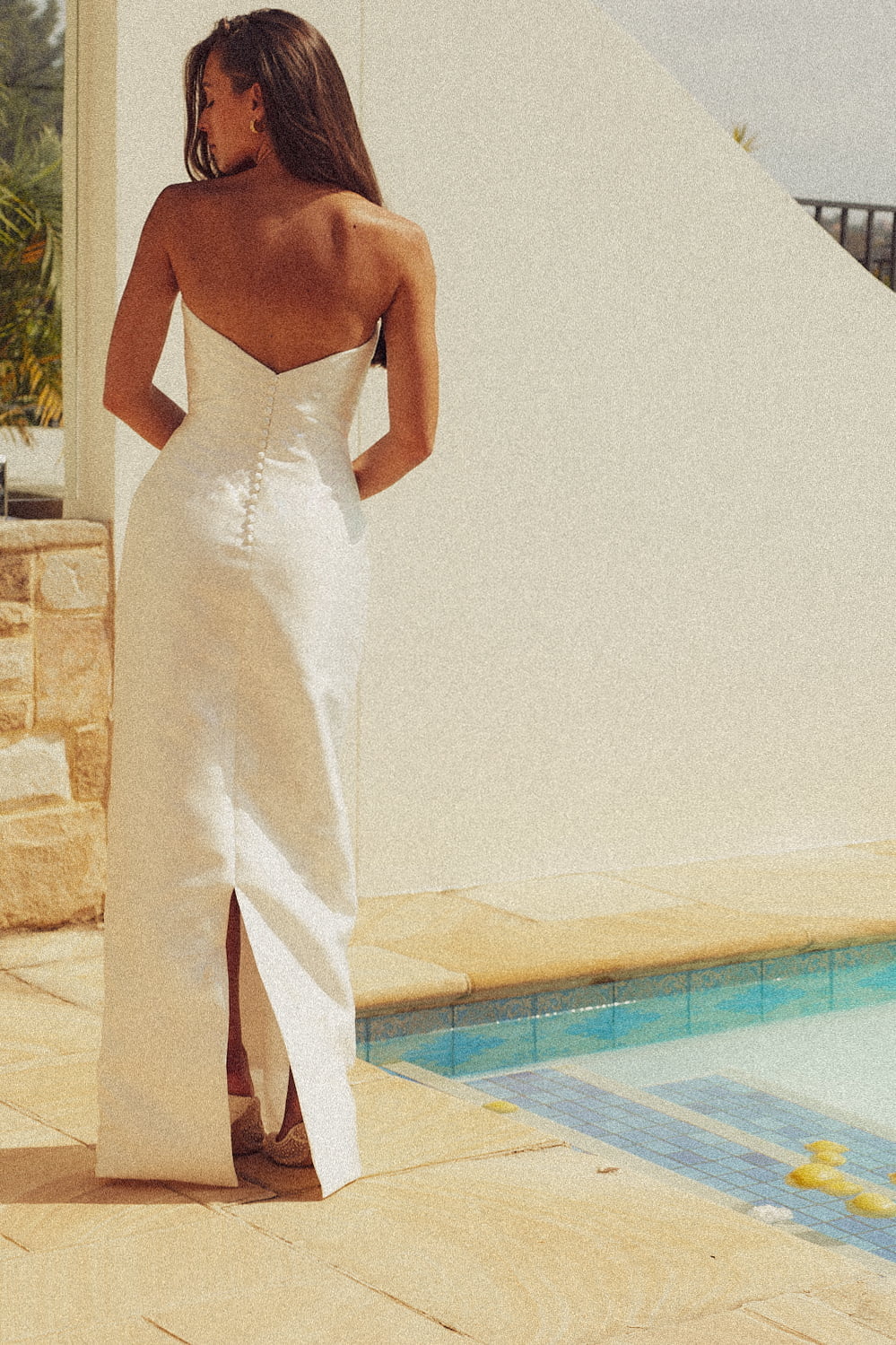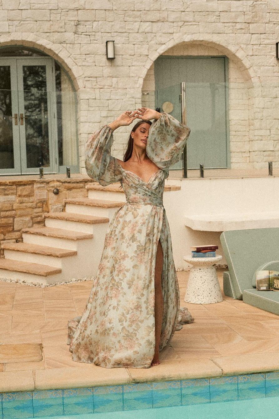 Now friends, it’s truly not a stretch to say we are gd obsessed with each and every gown in the Exhale range, but there are a few pieces we feel deserve a special shoutout… like The Gigi, with her sleek column silhouette – timeless yet edgy. We can’t go past The Remi (above), either – loving hard on that scooped neckline and dramatic, architectural skirt; and we are totally swooning over the whimsical Mairead, cut from the most beautiful printed silk chiffon.