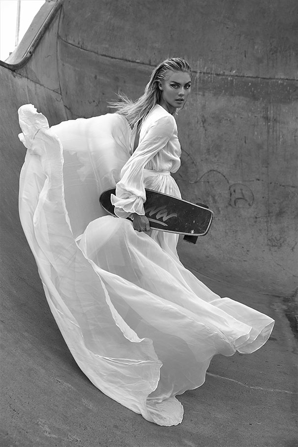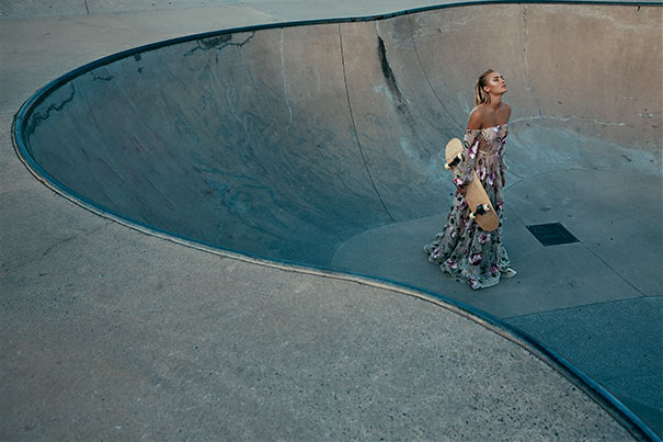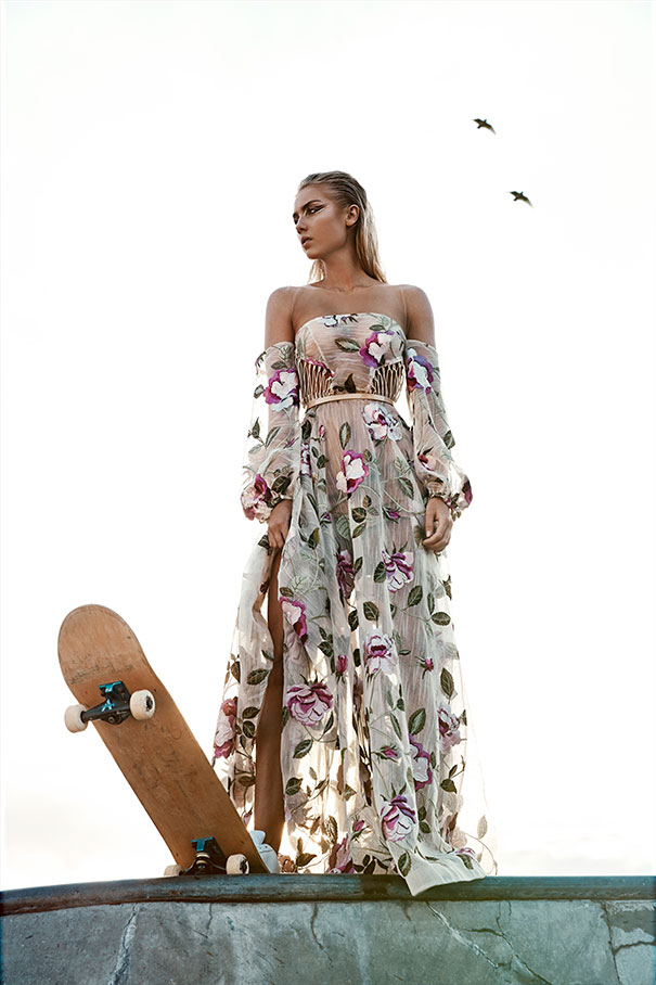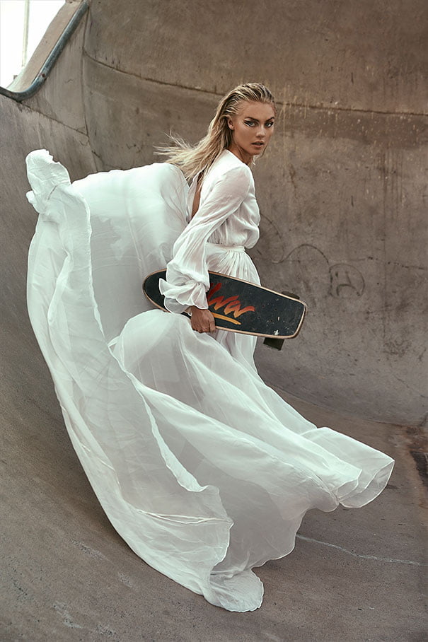 Nothing says ‘pushing boundaries in bridal’ quite like the One Day Bridal, so it’s no surprise that when Creative Director Kyha had a vision of her gowns moving against concrete boundaries and a muse on a skateboard, it was her goal to bring it to life.
