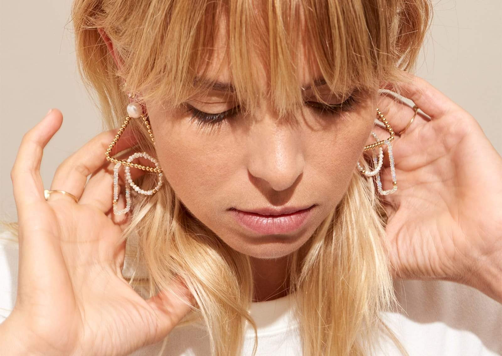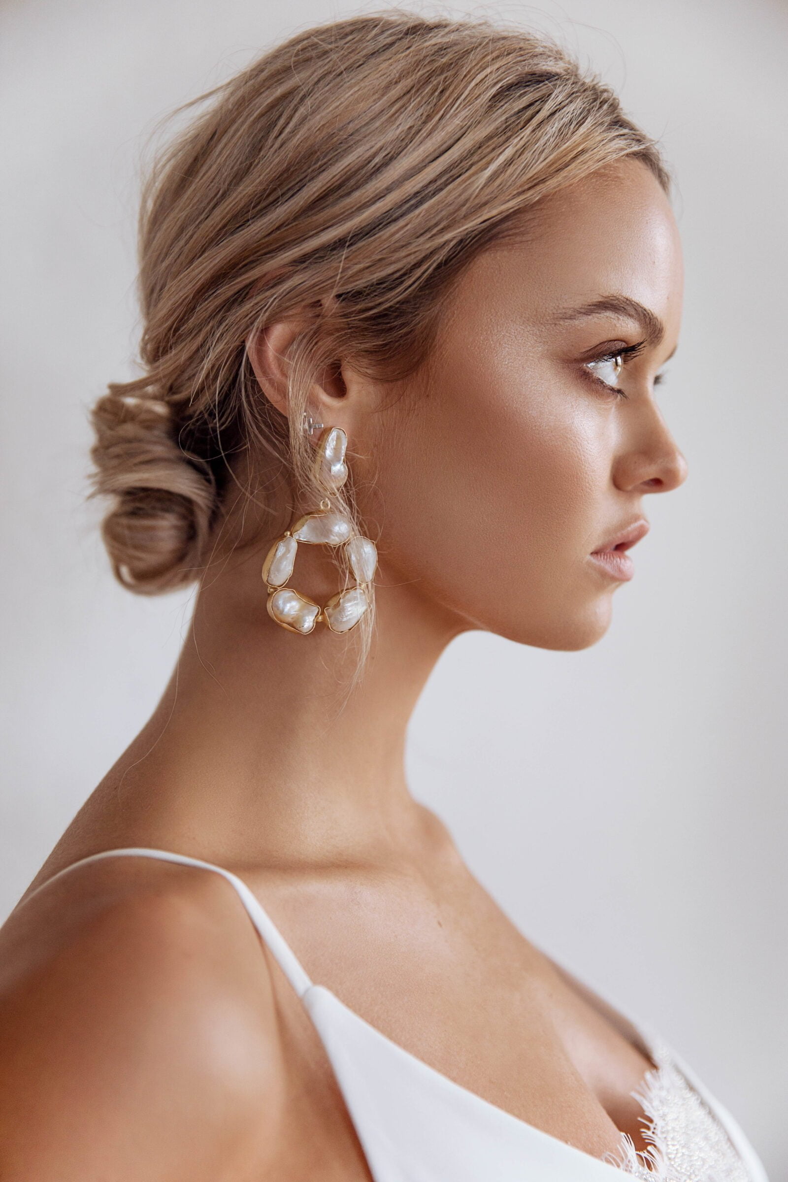 Lastly, don’t miss Grace Loves Lace’s multi-strand earrings for a new take on tassels, One Day Bridal’s glorious Daisy Earrings that are just as cool with a casual up ‘do, as peeking through soft waves and Cushla Whiting’s Planetary Pearl Hoops if you feel like truly spoiling yourself.