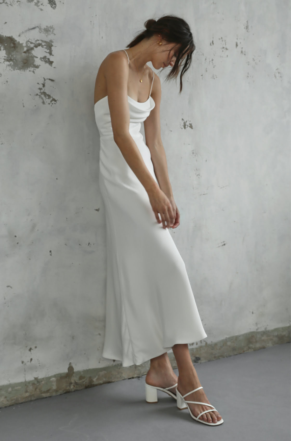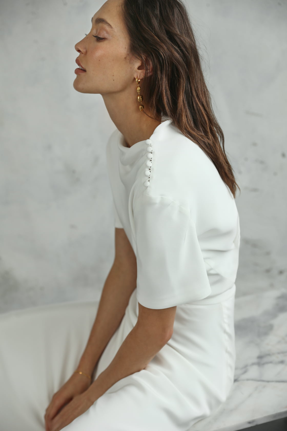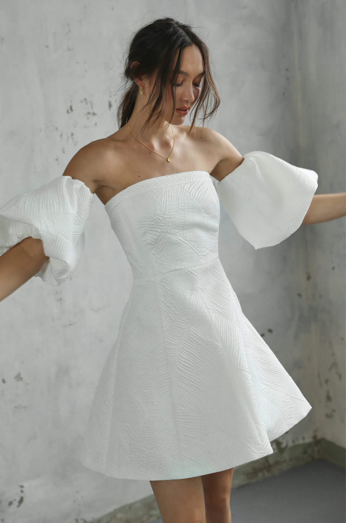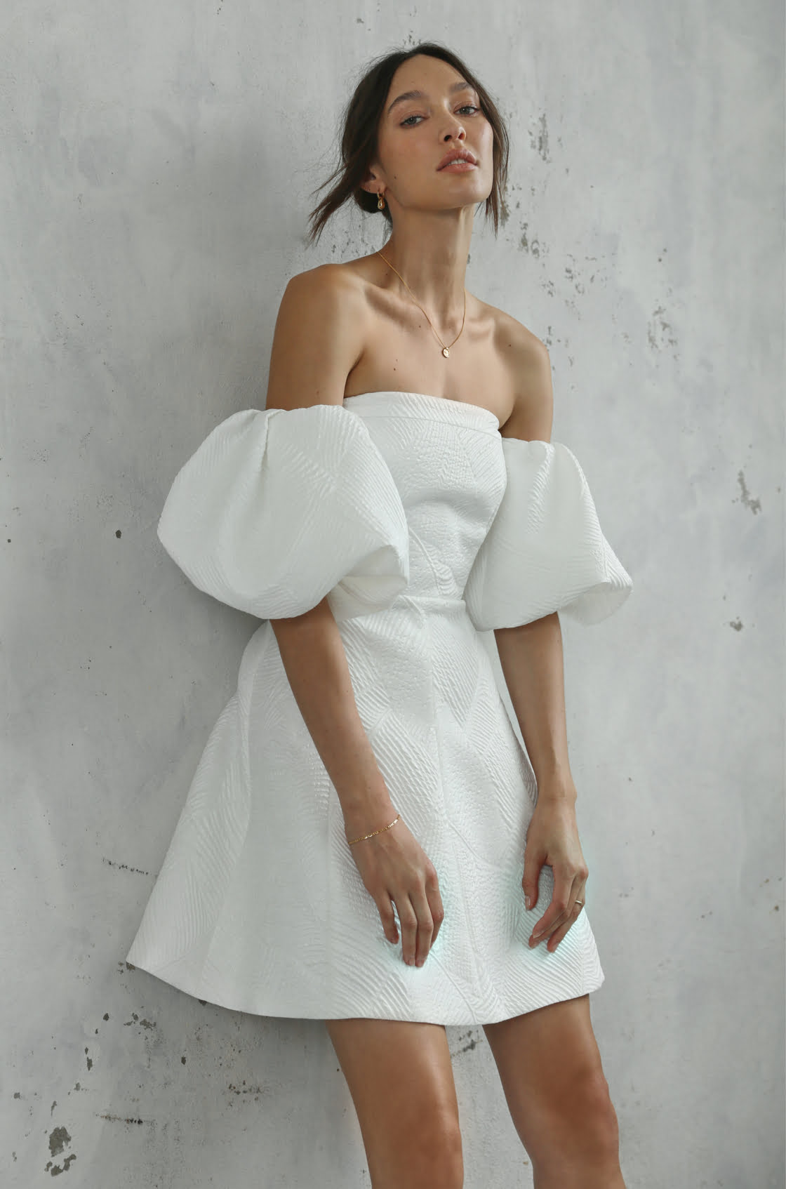 The six-strong collection boasts Prea’s signature relaxed tailoring with silhouettes that simply fall off the body in the very best way, chic lines, separates to mix and match and textures on tap – think crepe and feathers with stunning soft silks. Always keeping it classy, there are demure necklines, the highest, complete with a soft cowl lick and buttoned shoulders to ensure it is modern, contrasted with perfectly placed cutouts and slinky backs. There’s even a short, off the shoulder number that could double as a reception dress, rehearsal dinner, or hens party outfit. Sizes range from 6-18 (you’ll find a handy and very detailed guide here) and if you can’t get to Prea’s new boutique in Sydney, you’ll also find her pieces in Sphere Bridal Gallery in QLD and Mrs Fray in ACT.