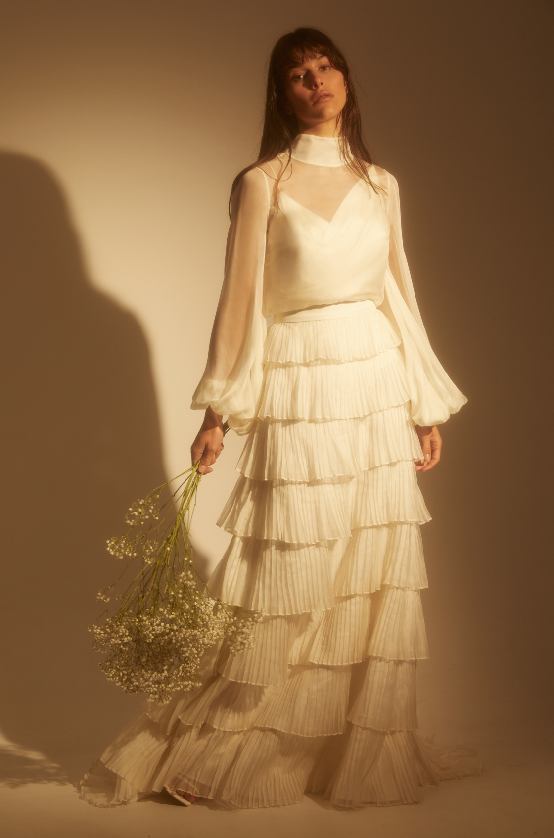 Lilia Cass Emilie Top, $585, and Brina Skirt, $945, shop online at Lilia Cass.