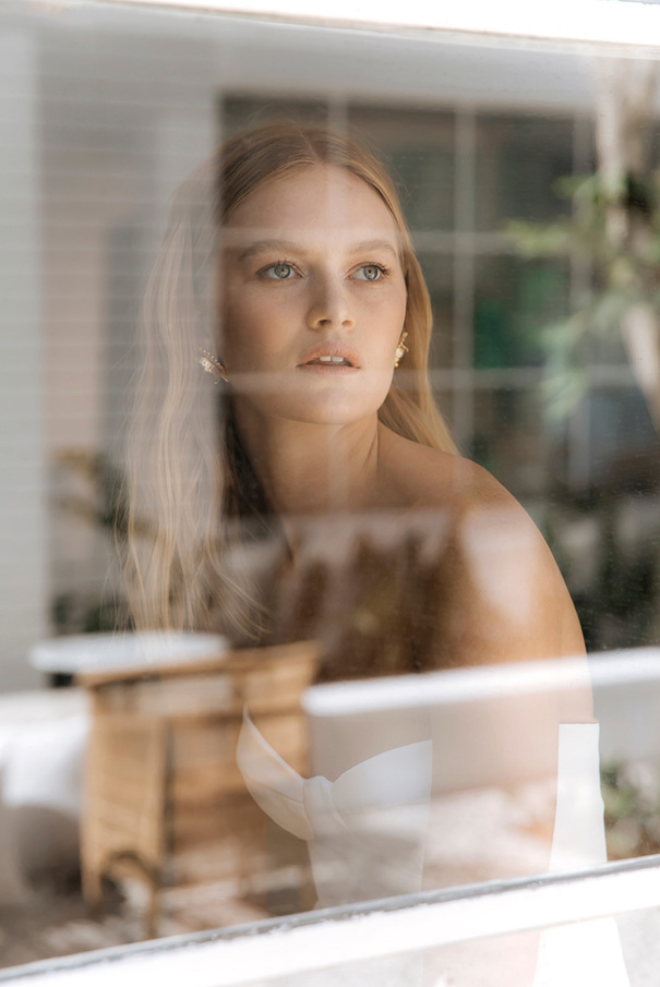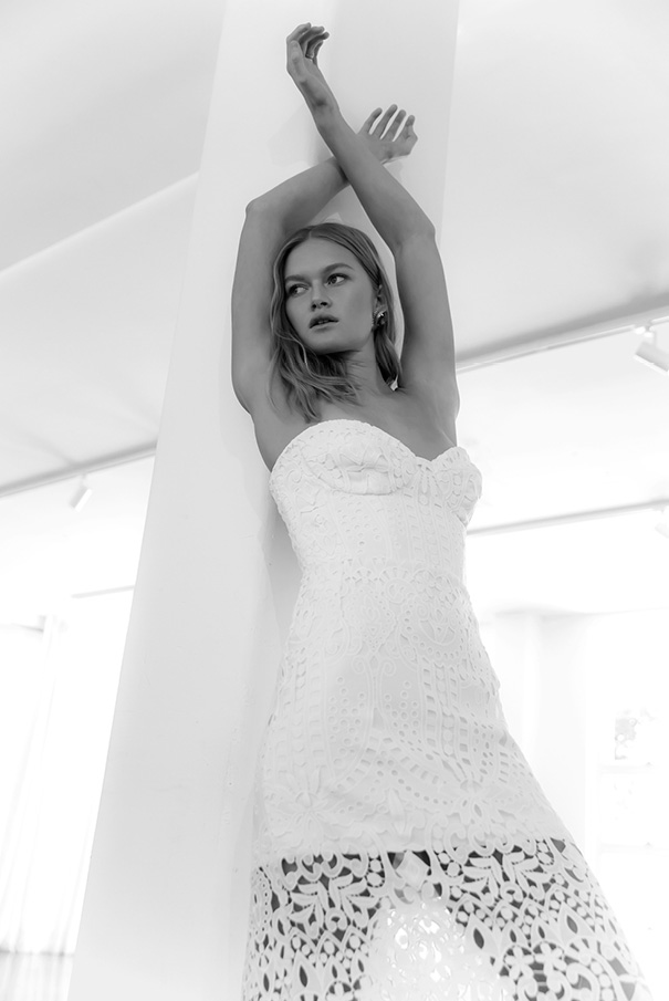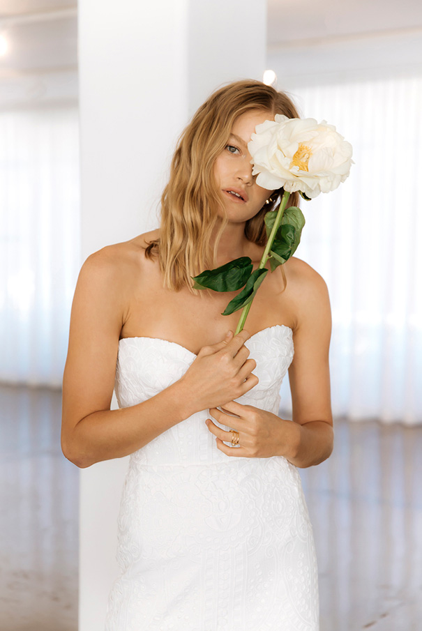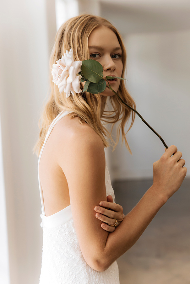 CREDITS Photographer Tess Leopold // Dress Designer Prea James // Model Alice Morgan IMG // Hair & Makeup Jasmine Ab Makeup // Floral Styling Clare Harmer from Fleur & Threads // Accessories JY Jewels and Samantha Wills // Location La Porte Space.