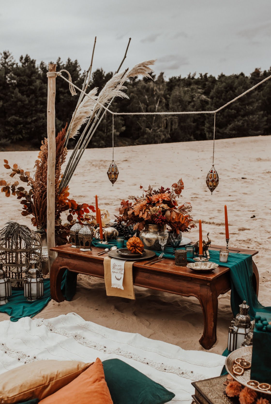 Further below you’ll also find candlelight inspiration, neon signs, teepee styling ideas and intimate lunchtime setups for a dozen of your fave humans (complete with custom made matchboxes for favours). But the good ideas don’t end there. Check out the bums on the sand approach to reception seating further down along with the epic industrial styling ideas second from the bottom (with florals to boot by Pomp & Splendour) and, last but not least, right at the bottom there, the amazing fabric installation by Nomad Styling, who also happens to be one of our Top 20 Wedding Stylists to Follow on Instagram.